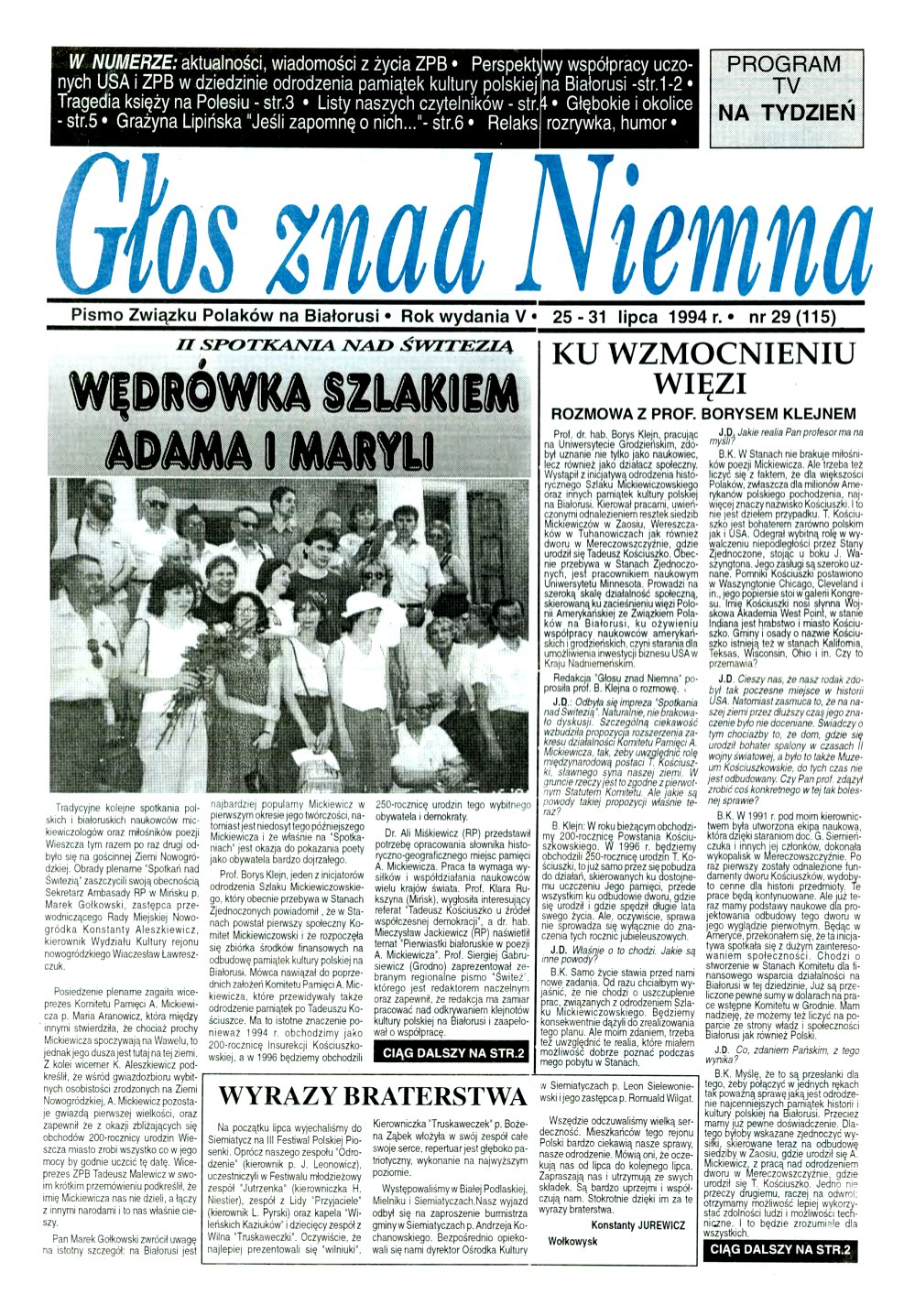 Głos znad Niemna – polskojęzyczny tygodnik wydawany na Białorusi od 3 grudnia 1989 roku; organ prasowy Związku Polaków na Białorusi. Twórcą i pierwszym redaktorem pisma był Eugeniusz Skrobocki z Grodna. Dzięki jego zaangażowaniu pierwsze numery „Głosu znad Niemna” otrzymał Papież Jan Paweł II podczas prywatnej audiencji władz Związku w Watykanie w roku 1990. Pierwszy numer ukazał się jako dodatek specjalny do Czerwonego Sztandaru z okaz... Болей »