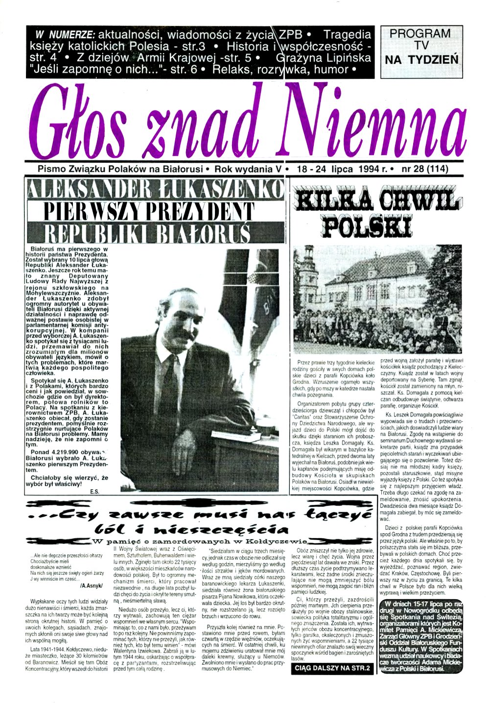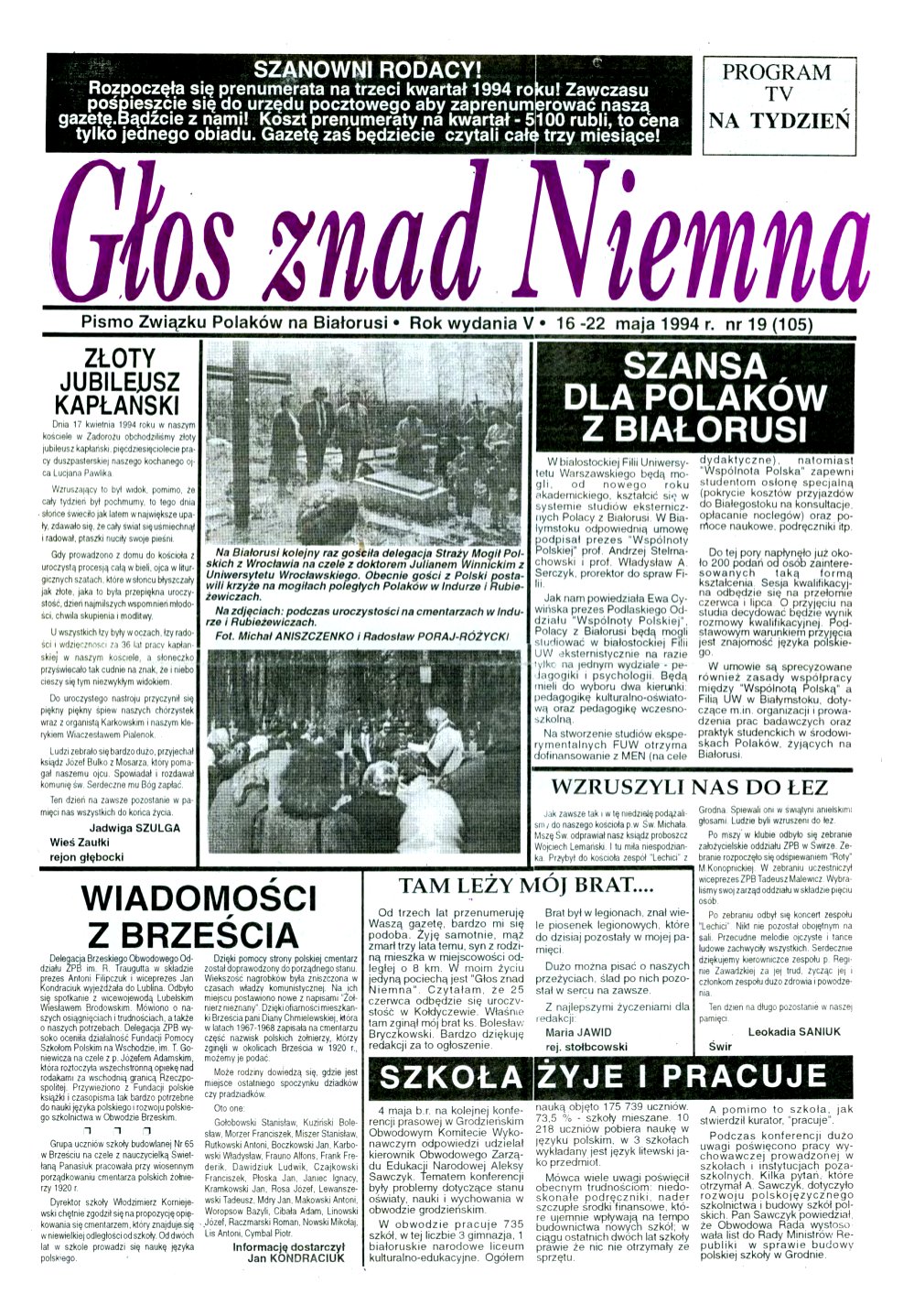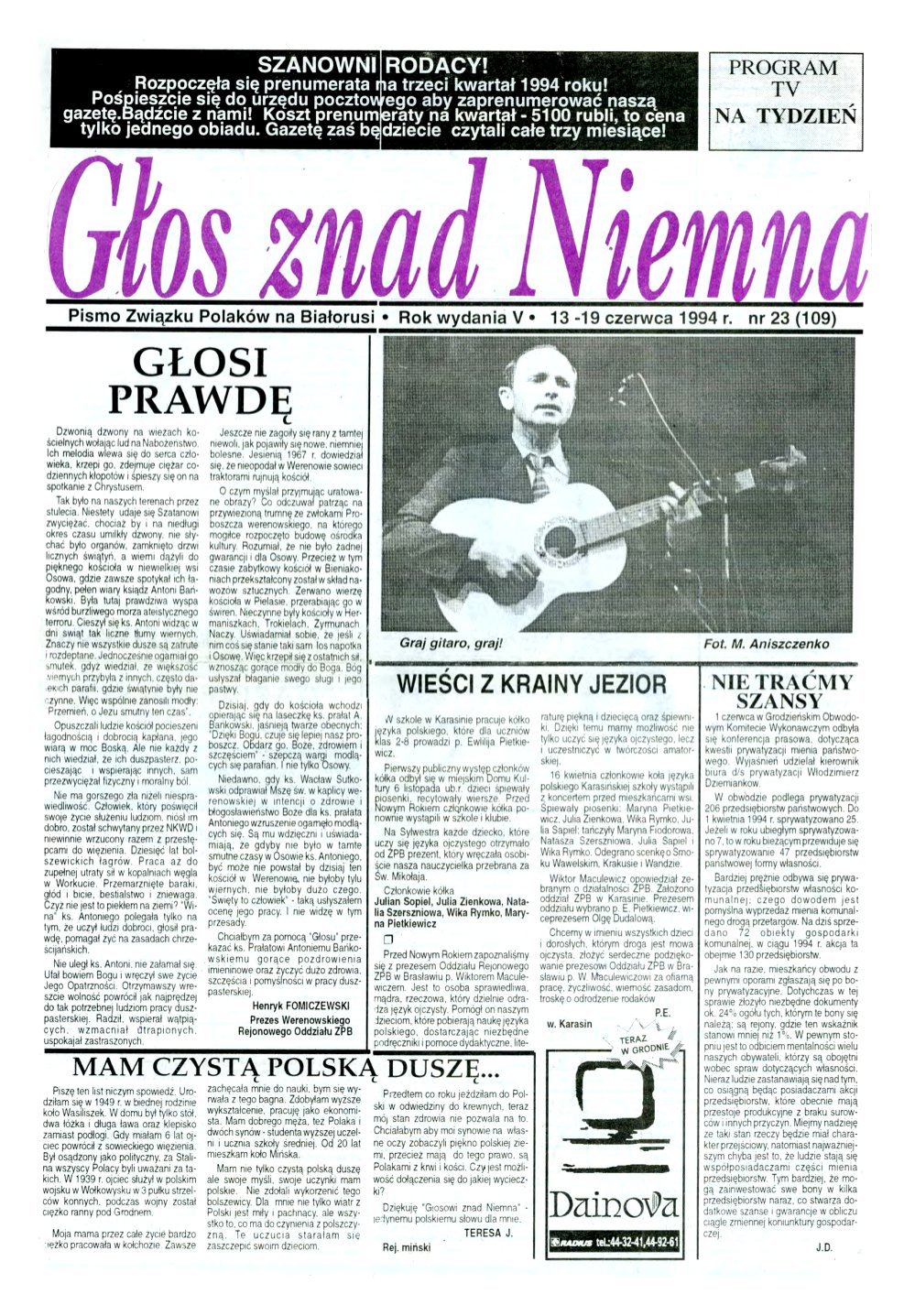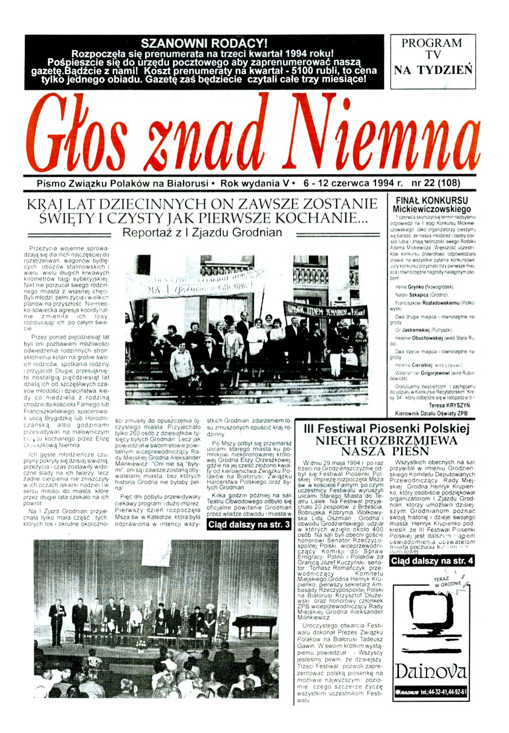 Głos znad Niemna – polskojęzyczny tygodnik wydawany na Białorusi od 3 grudnia 1989 roku; organ prasowy Związku Polaków na Białorusi. Twórcą i pierwszym redaktorem pisma był Eugeniusz Skrobocki z Grodna. Dzięki jego zaangażowaniu pierwsze numery „Głosu znad Niemna” otrzymał Papież Jan Paweł II podczas prywatnej audiencji władz Związku w Watykanie w roku 1990. Pierwszy numer ukazał się jako dodatek specjalny do Czerwonego Sztandaru z okaz... Болей »