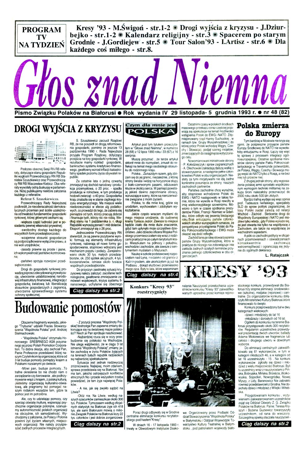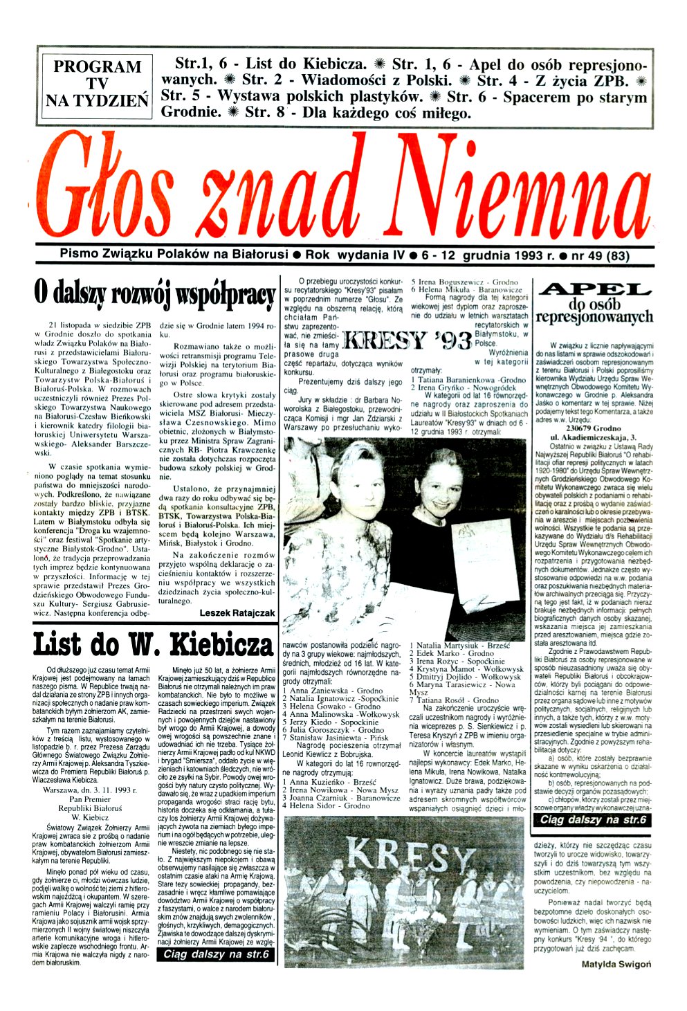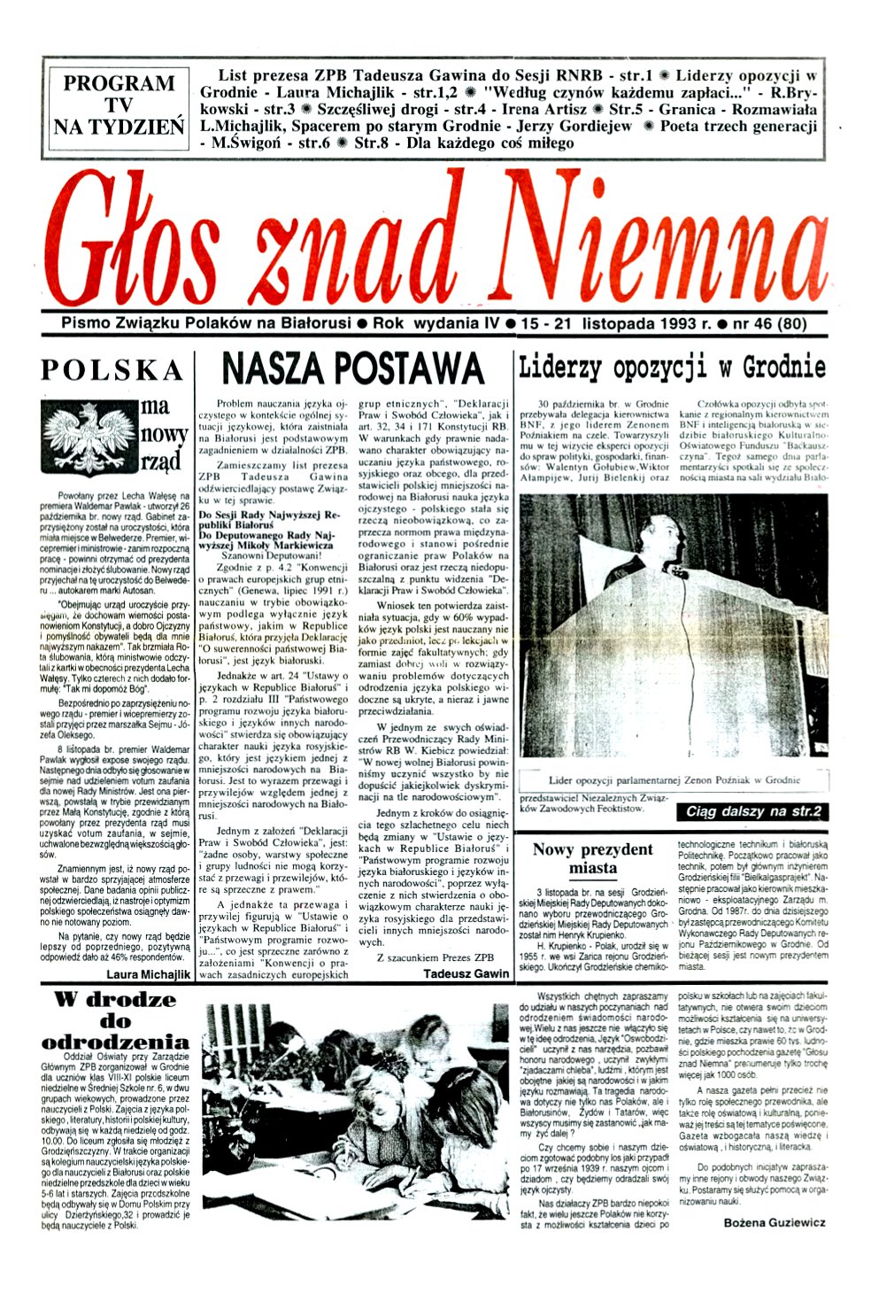 Głos znad Niemna – polskojęzyczny tygodnik wydawany na Białorusi od 3 grudnia 1989 roku; organ prasowy Związku Polaków na Białorusi. Twórcą i pierwszym redaktorem pisma był Eugeniusz Skrobocki z Grodna. Dzięki jego zaangażowaniu pierwsze numery „Głosu znad Niemna” otrzymał Papież Jan Paweł II podczas prywatnej audiencji władz Związku w Watykanie w roku 1990. Pierwszy numer ukazał się jako dodatek specjalny do Czerwonego Sztandaru z okaz... Болей »
