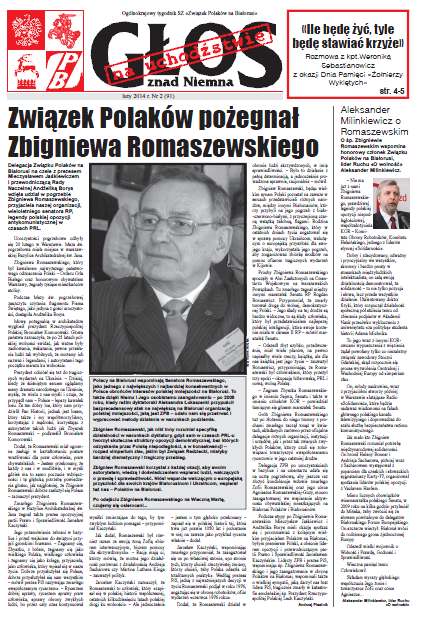 Delegacja Związku Polaków na Białorusi na czele z prezesem Mieczysławem Jaśkiewiczem i przewodniczącą Rady Naczelnej Andżeliką Borys wzięła udział w pogrzebie Zbigniewa Romaszewskiego, przyjaciela naszej organizacji, wieloletniego senatora RP, legendy polskiej opozycji antykomunistycznej w czasach PRL. Болей »