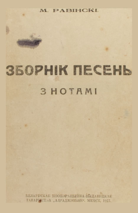 Гэтая кніга належыць да бібліятэкі сучаснага Віленскага Беларускага Музэю імя Івана Луцкевіча. Адсканавана ў рамках праекту Баркулаб. Равенскі Мікола (на тытуле "Равінскі"). Зборнік песень з нотамі. Менск: Беларускае кааперацыйна-выдавецкае таварыства "Адраджэньне". 1922. - 72 стр. Стан: прымальны, кніга мае бібліятэчны цьвёрды пераплёт, на нахзацы пячатка "Karlsbadska 33 Komisarjat 2", шмат заўвагаў ды выпраўленьняў рукой. Памеры аркуш... Болей »