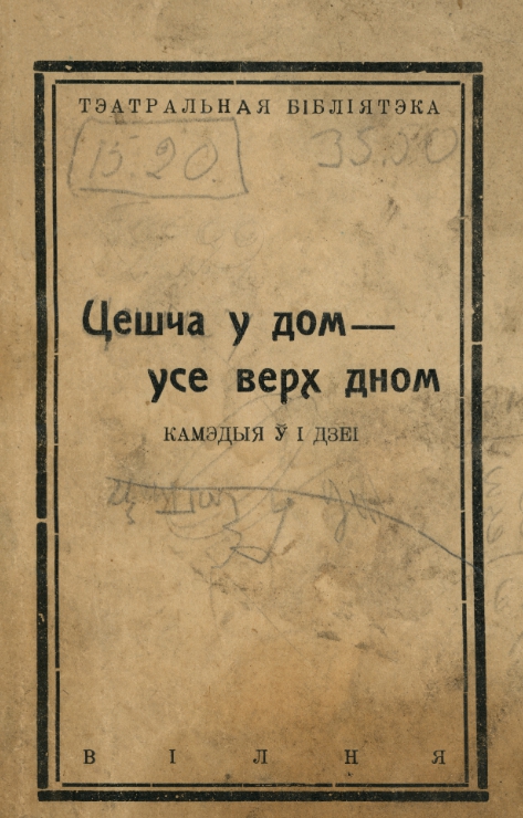 Гэтая кніга належыць да бібліятэкі сучаснага Віленскага Беларускага Музэю імя Івана Луцкевіча. Адсканавана ў рамках праекту Баркулаб. Цешча у дом - усе верх дном. З украінскае мовы пераклаў М.Ш. / Сэрыя " Тэатральная Бібліятэка"— Вільня: [s.n.] [друкарня Клецкіна], 1935. – 38 с. Наклад 500 асобнікаў. Памеры аркуша: 18,5 х 14 см. На пярэдней вокладцы лічбы і крамзолі алоўкам, на задней вокладцы ініцыялы F.T. (відавочна "Фонд Тулейкі") і ... Болей »