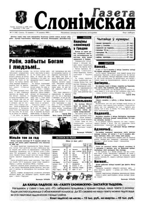 Газета Слонімская, 11 (40) 1998
