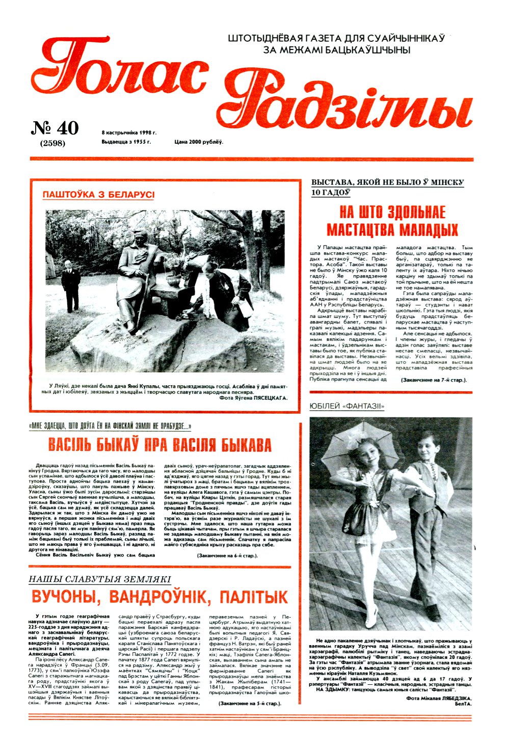 «Голас Радзімы» — штотыднёвая газета для суайчыннікаў за межамі Беларусі. Выдаецца з 6 красавіка 1955 года ў Мінску на беларускай мове штотыднёва. Да студзеня 1960 года называлася «За вяртанне на Радзіму». З сярэдзіны 1970-х гадоў асвятляла жыццё, у тым ліку беларускай эміграцыі. З сярэдзіны 1990-х гадоў адзінае беларускае выданне, якое распаўсюджвалася сярод нацыянальнай дыяспары і ў асяроддзі замежных беларусістаў. Болей »