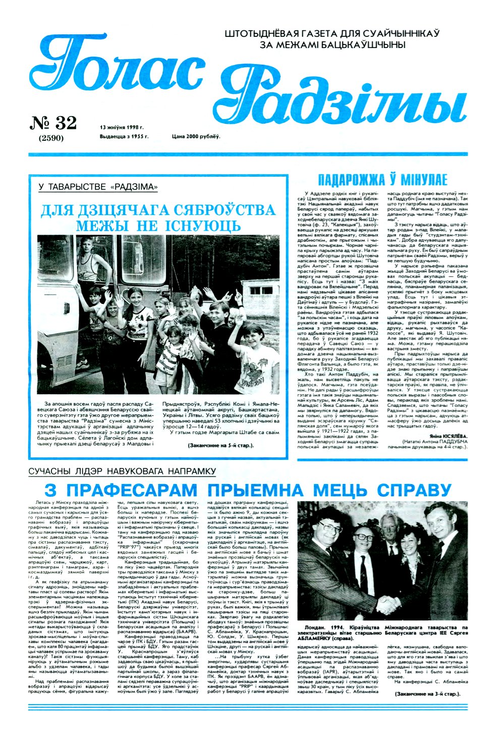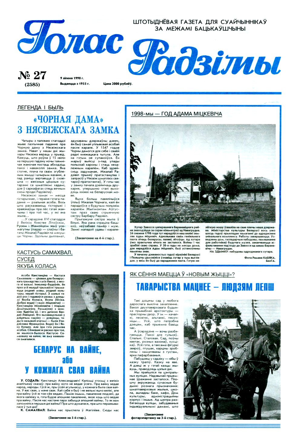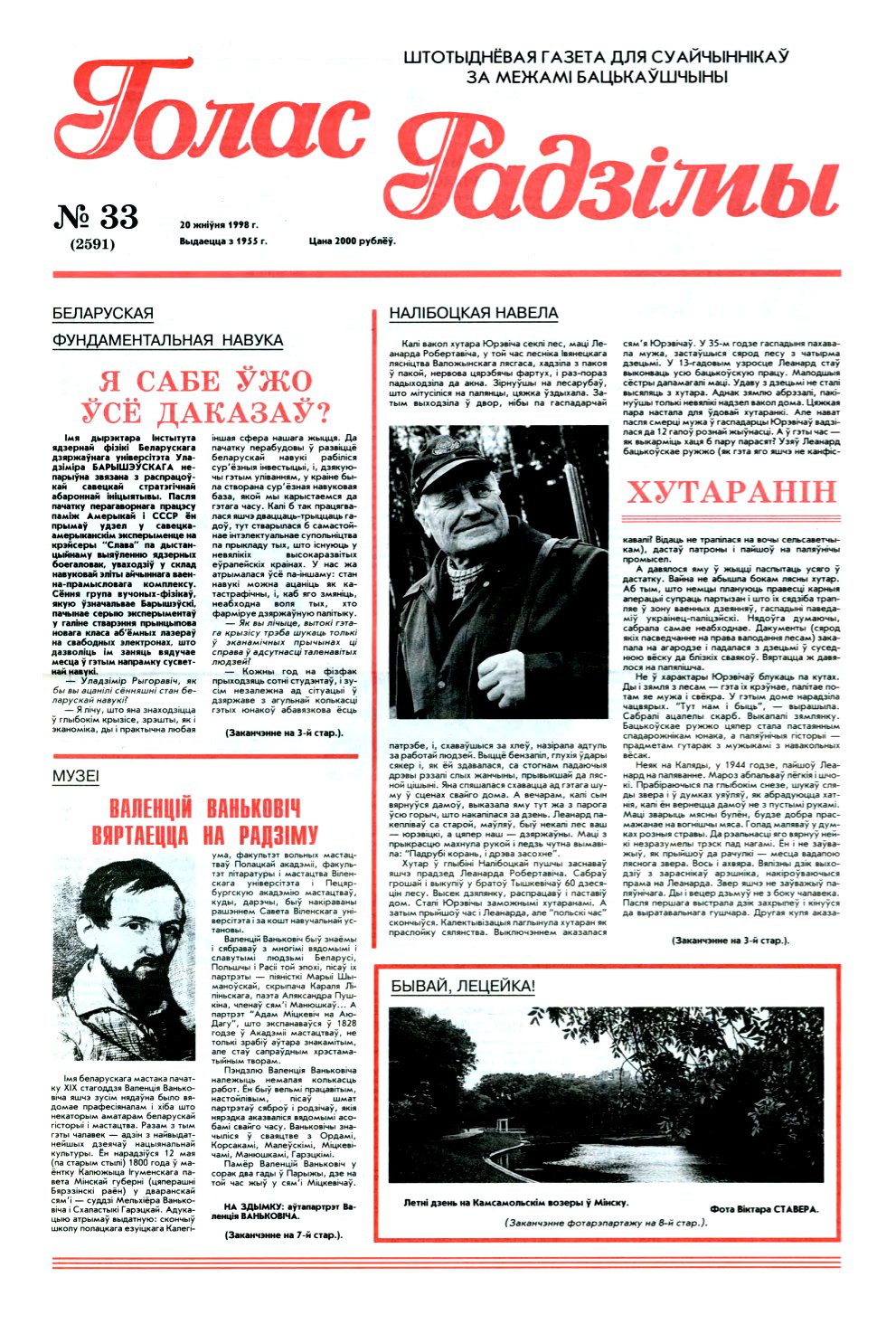 «Голас Радзімы» — штотыднёвая газета Беларускага таварыства Радзіма; інфармацыйна-асветная газета для беларусаў за мяжой. Выдаецца з 6 красавіка 1955 года ў Мінску на беларускай мове штотыднёва. Да студзеня 1960 года называлася «За вяртанне на Радзіму». З сярэдзіны 1970-х гадоў асвятляла жыццё, у тым ліку беларускай эміграцыі. З сярэдзіны 1990-х гадоў адзінае беларускае выданне, якое распаўсюджвалася сярод нацыянальнай дыяспары і ў асяр... Болей »