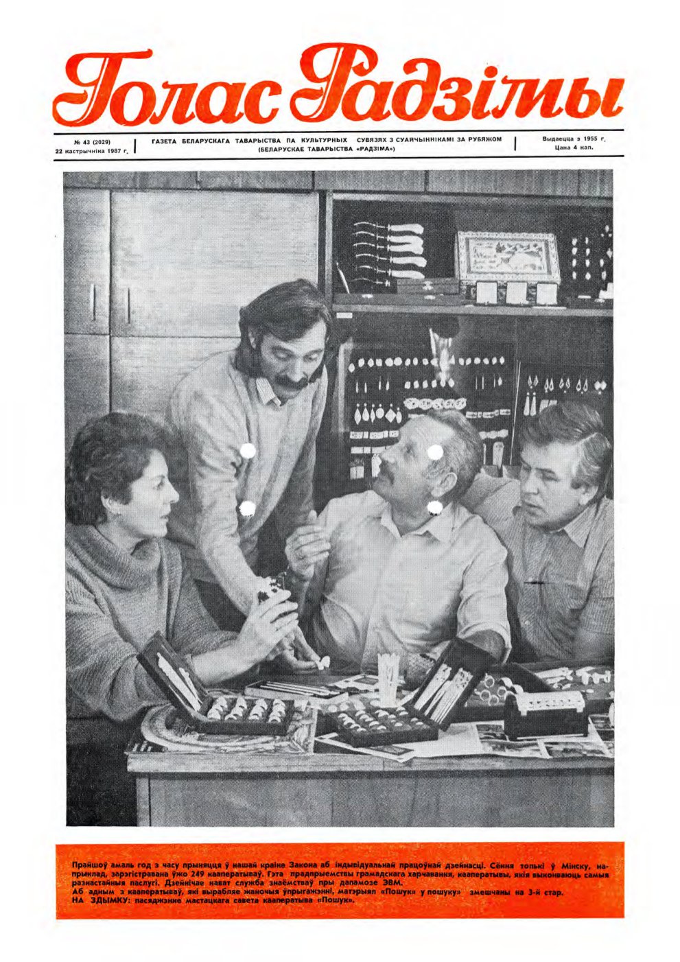 «Голас Радзімы» — штотыднёвая газета Беларускага таварыства Радзіма; інфармацыйна-асветная газета для беларусаў за мяжой. Выдаецца з 6 красавіка 1955 года ў Мінску на беларускай мове штотыднёва. Да студзеня 1960 года называлася «За вяртанне на Радзіму». З сярэдзіны 1970-х гадоў асвятляла жыццё, у тым ліку беларускай эміграцыі. З сярэдзіны 1990-х гадоў адзінае беларускае выданне, якое распаўсюджвалася сярод нацыянальнай дыяспары і ў асяр... Болей »