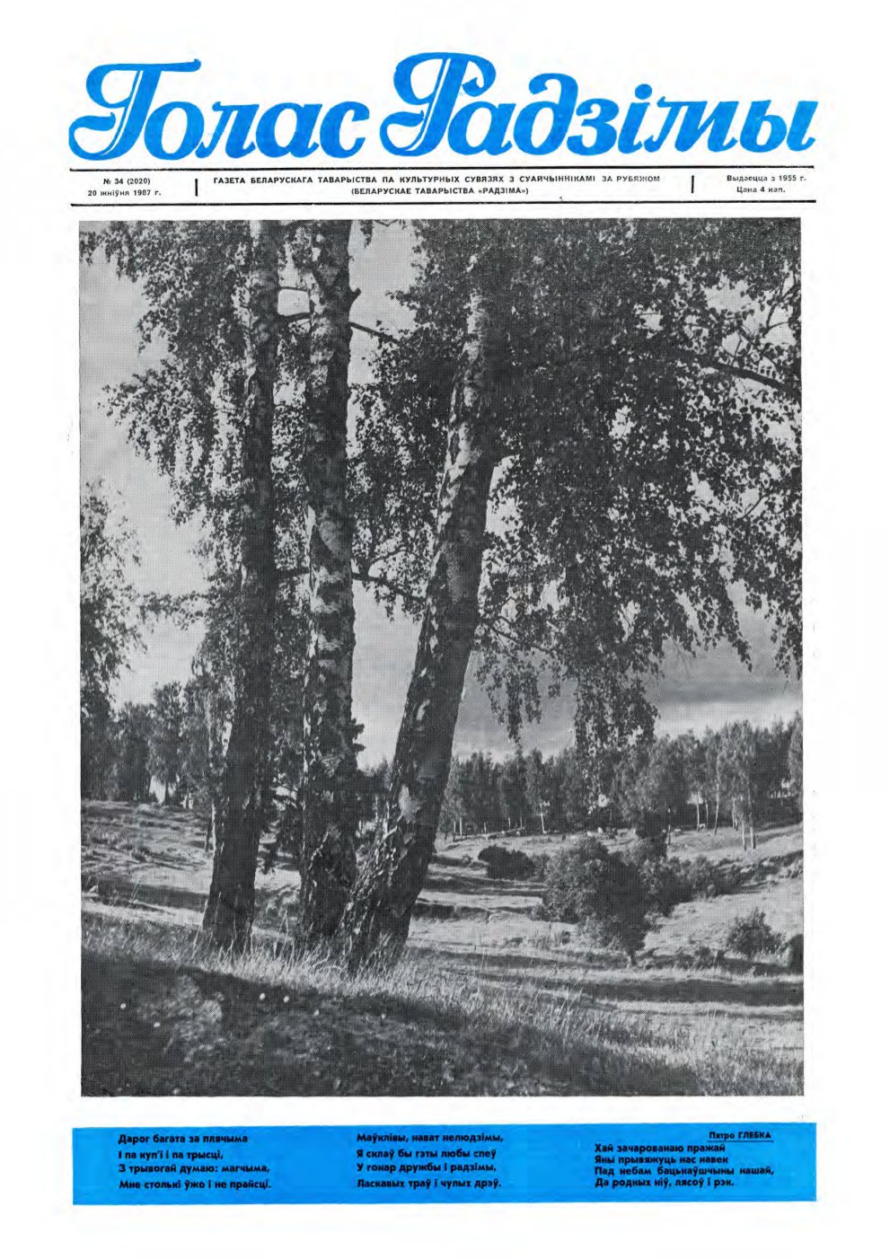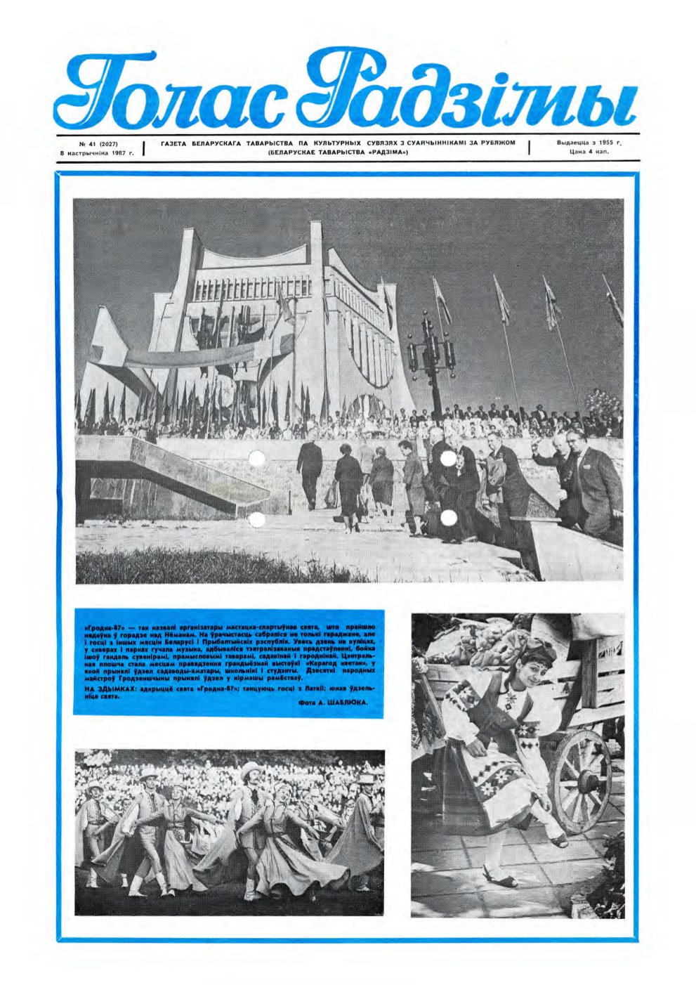 «Голас Радзімы» — штотыднёвая газета Беларускага таварыства Радзіма; інфармацыйна-асветная газета для беларусаў за мяжой. Выдаецца з 6 красавіка 1955 года ў Мінску на беларускай мове штотыднёва. Да студзеня 1960 года называлася «За вяртанне на Радзіму». З сярэдзіны 1970-х гадоў асвятляла жыццё, у тым ліку беларускай эміграцыі. З сярэдзіны 1990-х гадоў адзінае беларускае выданне, якое распаўсюджвалася сярод нацыянальнай дыяспары і ў асяр... Болей »
