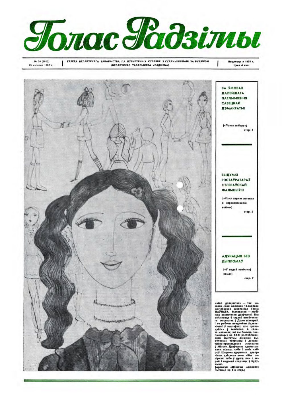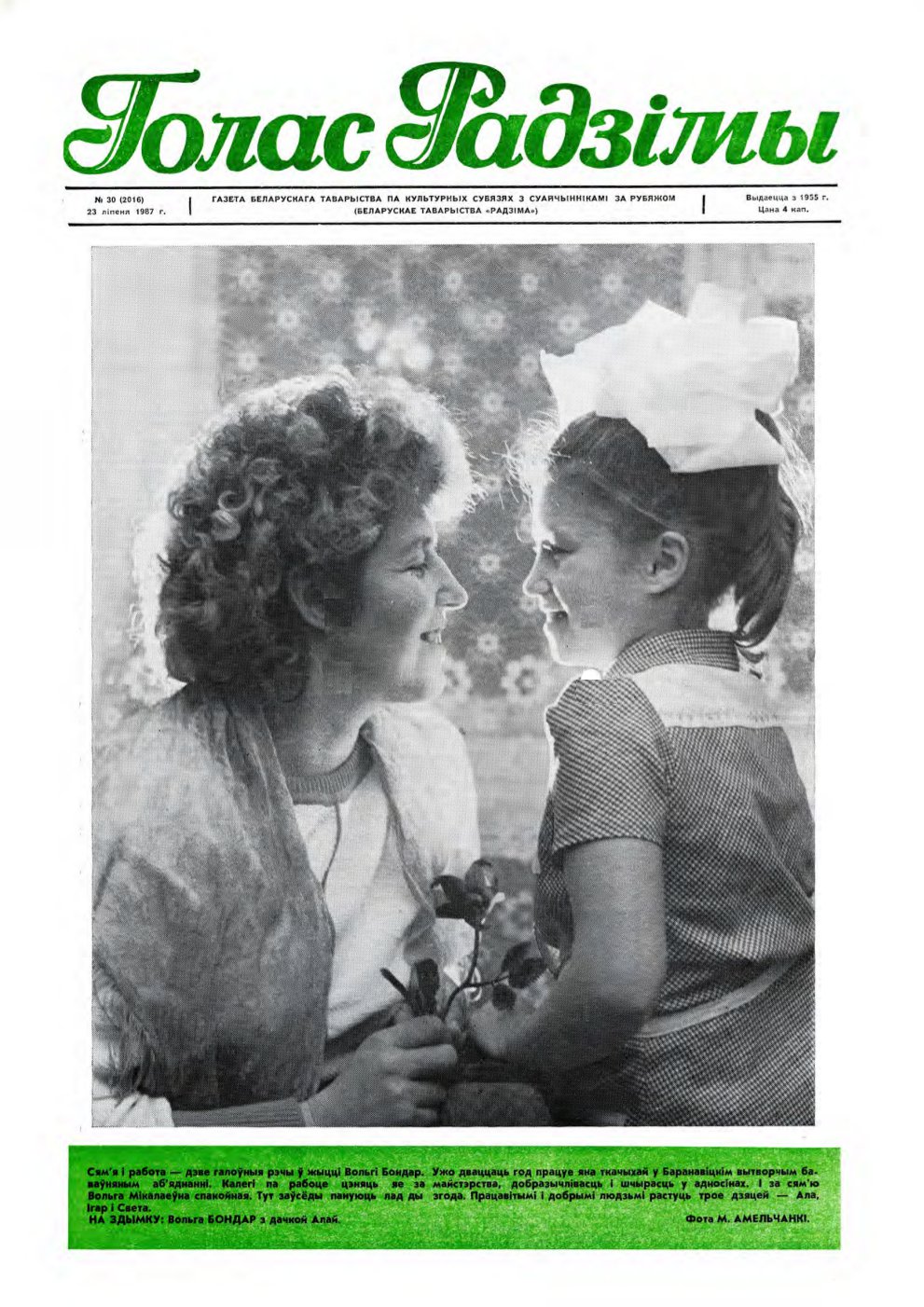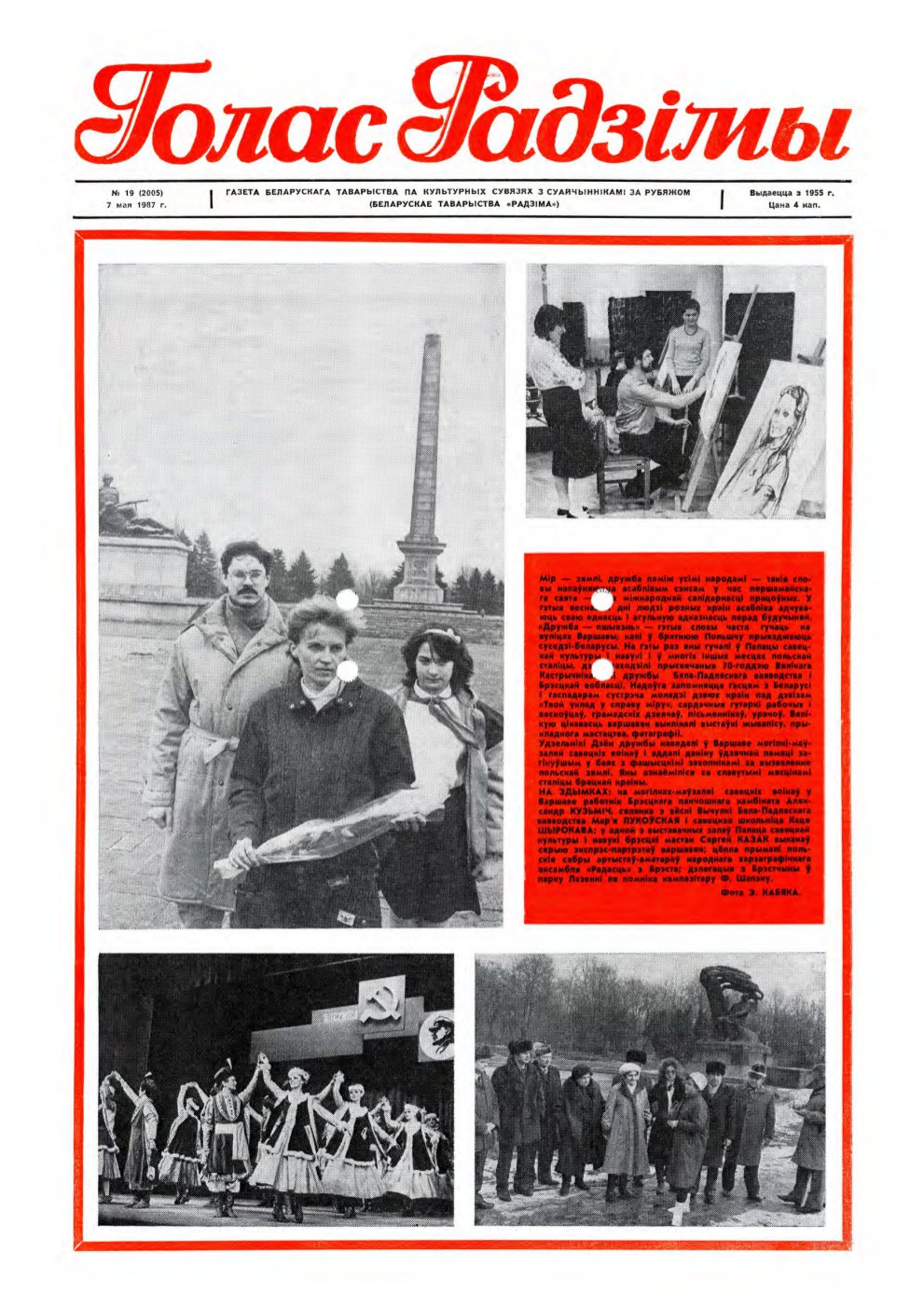 «Голас Радзімы» — штотыднёвая газета Беларускага таварыства Радзіма; інфармацыйна-асветная газета для беларусаў за мяжой. Выдаецца з 6 красавіка 1955 года ў Мінску на беларускай мове штотыднёва. Да студзеня 1960 года называлася «За вяртанне на Радзіму». З сярэдзіны 1970-х гадоў асвятляла жыццё, у тым ліку беларускай эміграцыі. З сярэдзіны 1990-х гадоў адзінае беларускае выданне, якое распаўсюджвалася сярод нацыянальнай дыяспары і ў асяр... Болей »