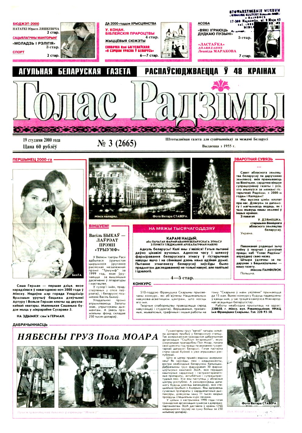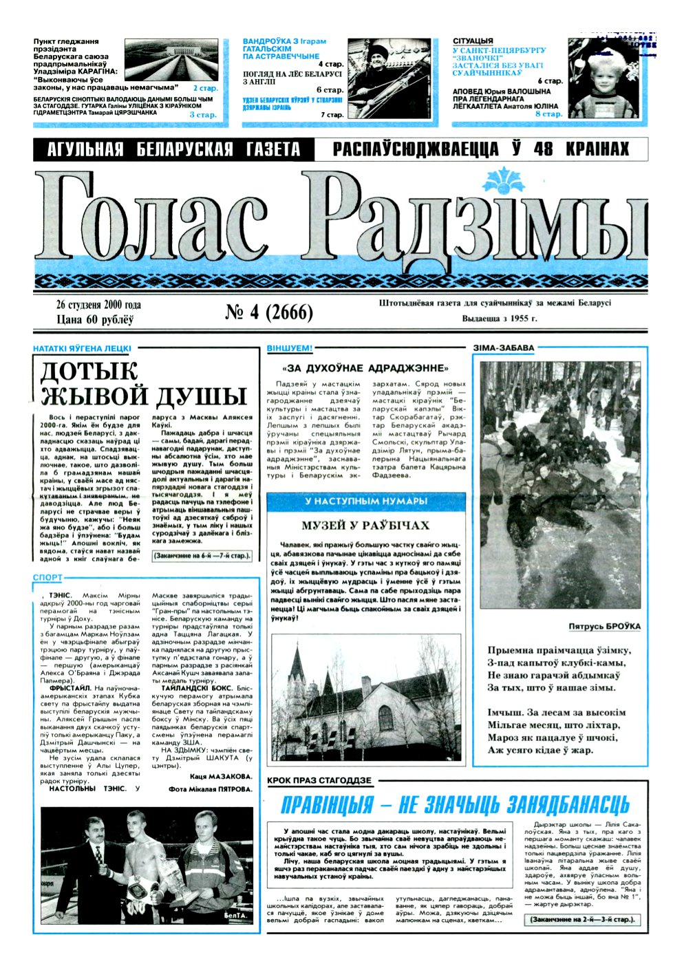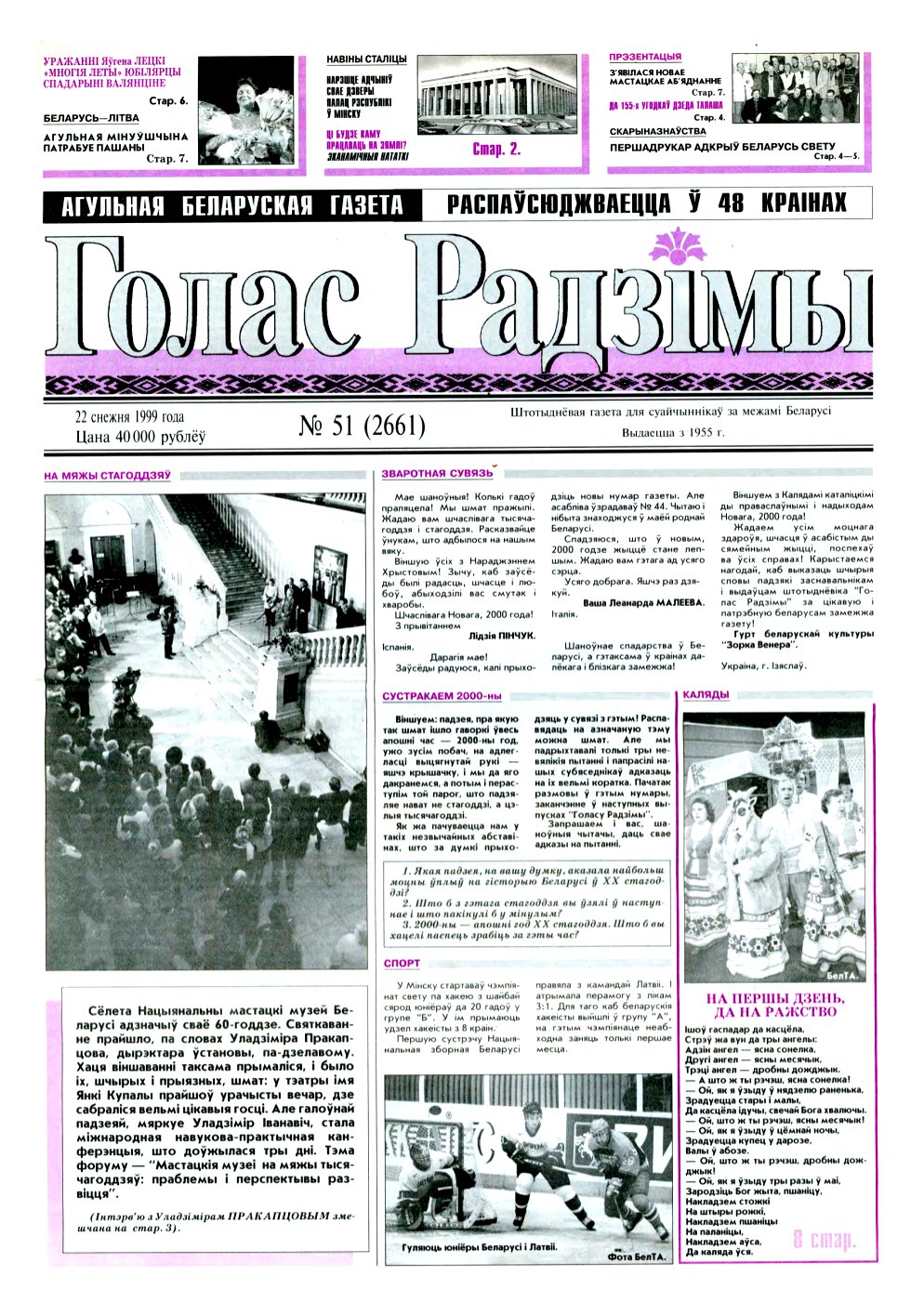 «Голас Радзімы» — штотыднёвая газета для суайчыннікаў за межамі Беларусі. Выдаецца з 6 красавіка 1955 года ў Мінску на беларускай мове штотыднёва. Да студзеня 1960 года называлася «За вяртанне на Радзіму». З сярэдзіны 1970-х гадоў асвятляла жыццё, у тым ліку беларускай эміграцыі. З сярэдзіны 1990-х гадоў адзінае беларускае выданне, якое распаўсюджвалася сярод нацыянальнай дыяспары і ў асяроддзі замежных беларусістаў. Болей »
