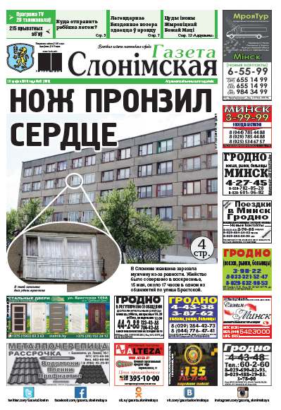 «Газета Слонімская» (скарочана «ГС», польск. Gazeta Słonimska) — беларуская штотыднёвая грамадска-палітычная газета, якая выходзіць у Слоніме. Упершыню выйшла ў 1938 годзе на польскай мове (ўсяго выйшла 4 нумары). «Газета Слонімская» была адноўленая ў 1997 годзе як незалежнае грамадска-палітычнае выданне на рускай і беларускай мовах. Яе заснавальнікам і галоўным рэдактарам стаў Віктар Валадашчук. Першы нумар адроджанай «Газеты Слонімска... More »