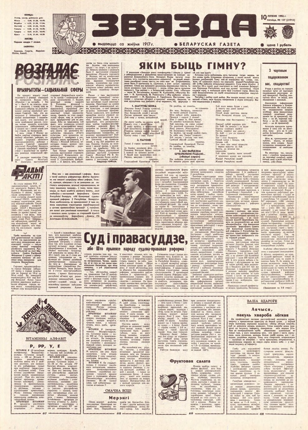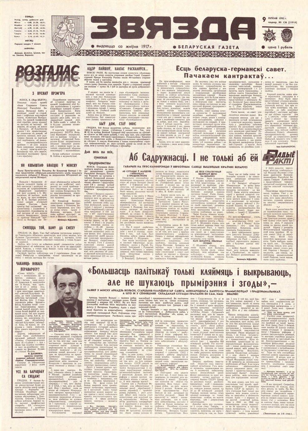 «Звязда» — орган Цэнтральнага Камітэта Камуністычнай партыі Беларусі, Вярхоўнага Савета і Савета Міністраў Беларускай ССР. Выходзіць 250 разоў на год. Аўтары апублікаваных матэрыялаў нясуць адказнасць за падбор і дакладнасць фактаў. Іх меркаванні неабавязкова адлюстроўваюць пункт гледжання рэдакцыі. More »
