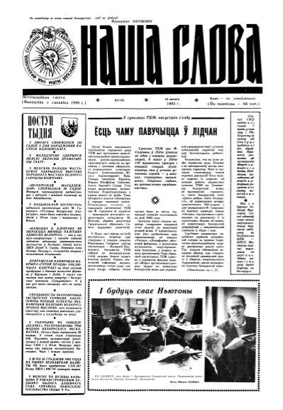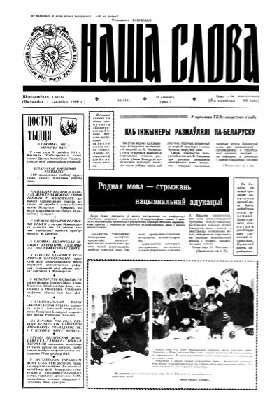 Газета “Наша слова” - газета Грамадскага аб’яднання “ТБМ імя Ф. Скарыны”, якое знаходзіцца на пярэднім краі барацьбы за нацыянальнае адраджэнне беларускага этнасу. Газета заснавана ў сакавіку 1990 года і да 1997 года выходзіла ў Менску. З лістапада 1997 года газета больш за 9 гадоў выдавалася Лідскай гарадской арганізацыя ГА “ТБМ імя Ф. Скарыны”. З 1 лютага 2007 года выдаўцом газеты “Наша слова” з’яўляецца Установа інфармацыі “Выдавецкі... More »