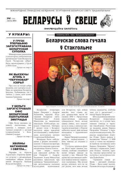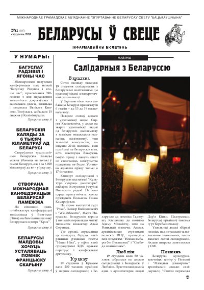 Асноўнай тэмай гэтага нумару стала інфармацыя пра акцыі салідарнасці з беларускімі палітвязнямі і пацярпелымі ў сувязі з падзеямі 19 снежня ў Мінску.Такія акцыі адбыліся ў розных гарадах свету: у Варшаве, Познані, Празе, Нью-Ёрку, Брусэлі, Гаазе, Браціславе… Таксама ў гэтым нумары можна прачытаць пра міжнародную канферэнцыю “Багуслаў Радзівіл і ягоны час”, якая прайшла ў Калінінградзе, пра стварэнне Міжнароднай канфедэрацыі беларусаў па... More »