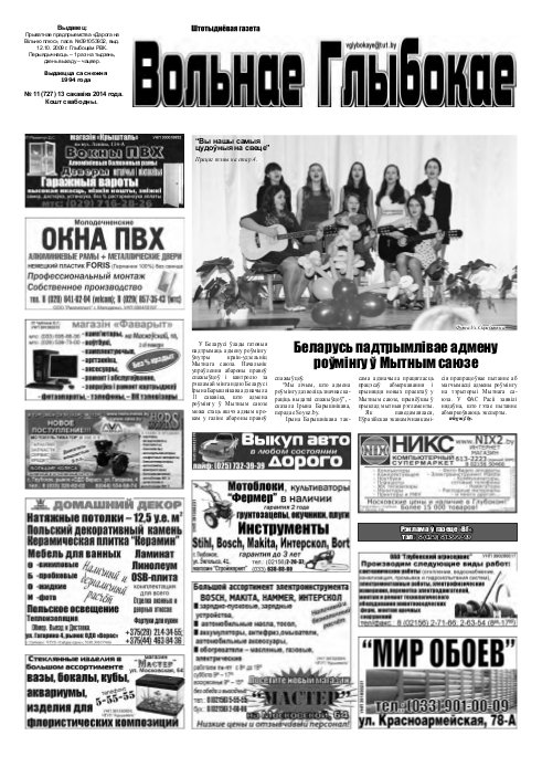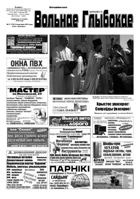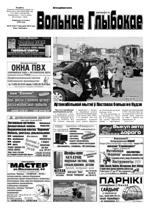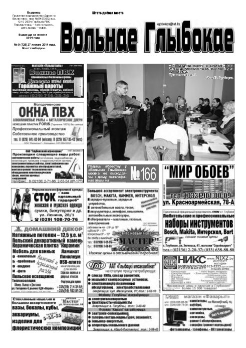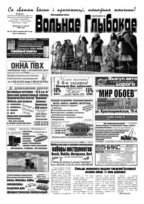 «Вольнае Глыбокае» — незалежная рэгіянальная беларуская штотыднёвая газета, выдаецца з 1994 г. у Глыбокім на беларускай і рускай мовах. Першапачаткова газета выходзіла як орган Глыбоцкай суполкі БНФ. Яе выданнем ад самага пачатку займаецца Уладзімір Скрабатун. Назву выдання ён тлумачыць так: "Вольнае таму, што вольная Беларусь. Беларусь паўстала як незалежная дзяржава, і ў гэтай назве няма ніякага супрацьпастаўлення ўладам або яшчэ якім... Болей »