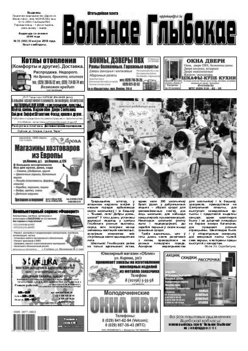 «Вольнае Глыбокае» — незалежная рэгіянальная беларуская штотыднёвая газета, выдаецца з 1994 г. у Глыбокім на беларускай і рускай мовах. Першапачаткова газета выходзіла як орган Глыбоцкай суполкі БНФ. Яе выданнем ад самага пачатку займаецца Уладзімір Скрабатун. Назву выдання ён тлумачыць так: "Вольнае таму, што вольная Беларусь. Беларусь паўстала як незалежная дзяржава, і ў гэтай назве няма ніякага супрацьпастаўлення ўладам або яшчэ якім... Болей »