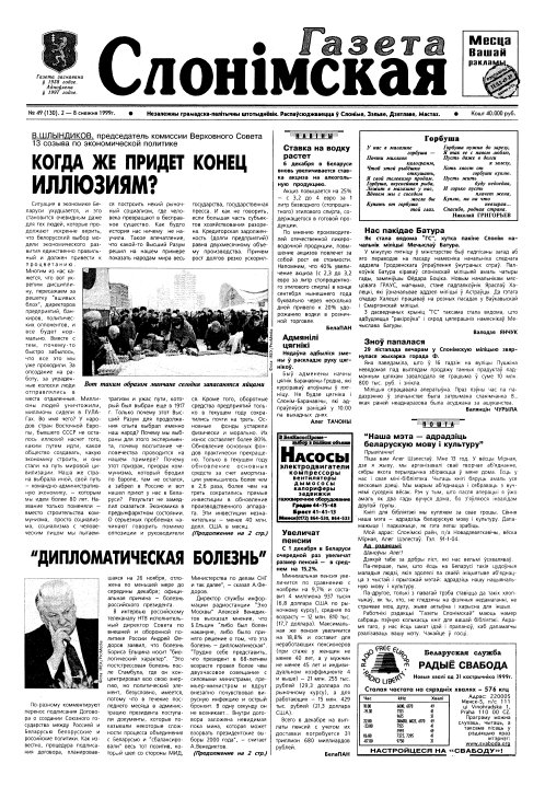 Газета Слонімская, 49 (130) 1999