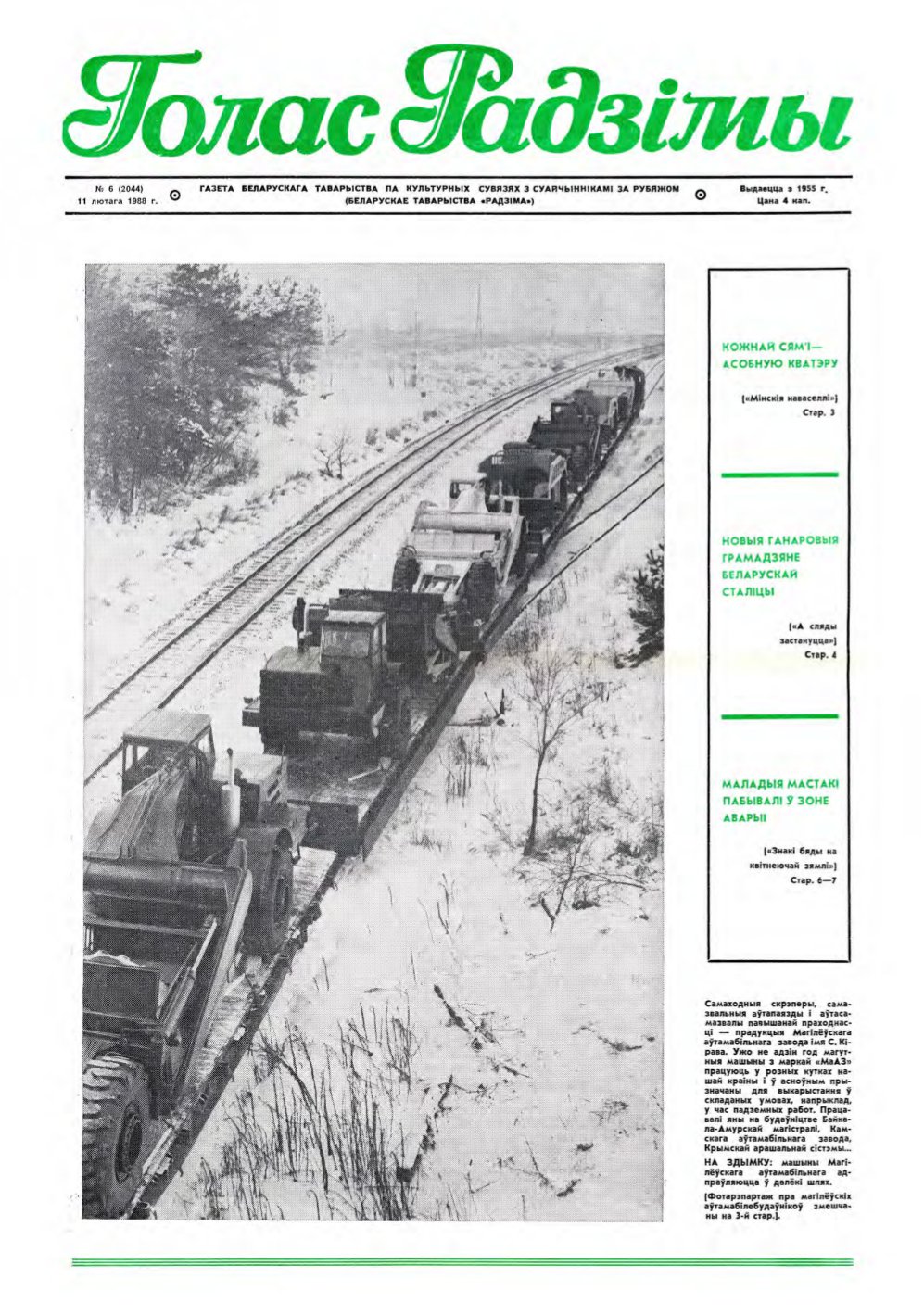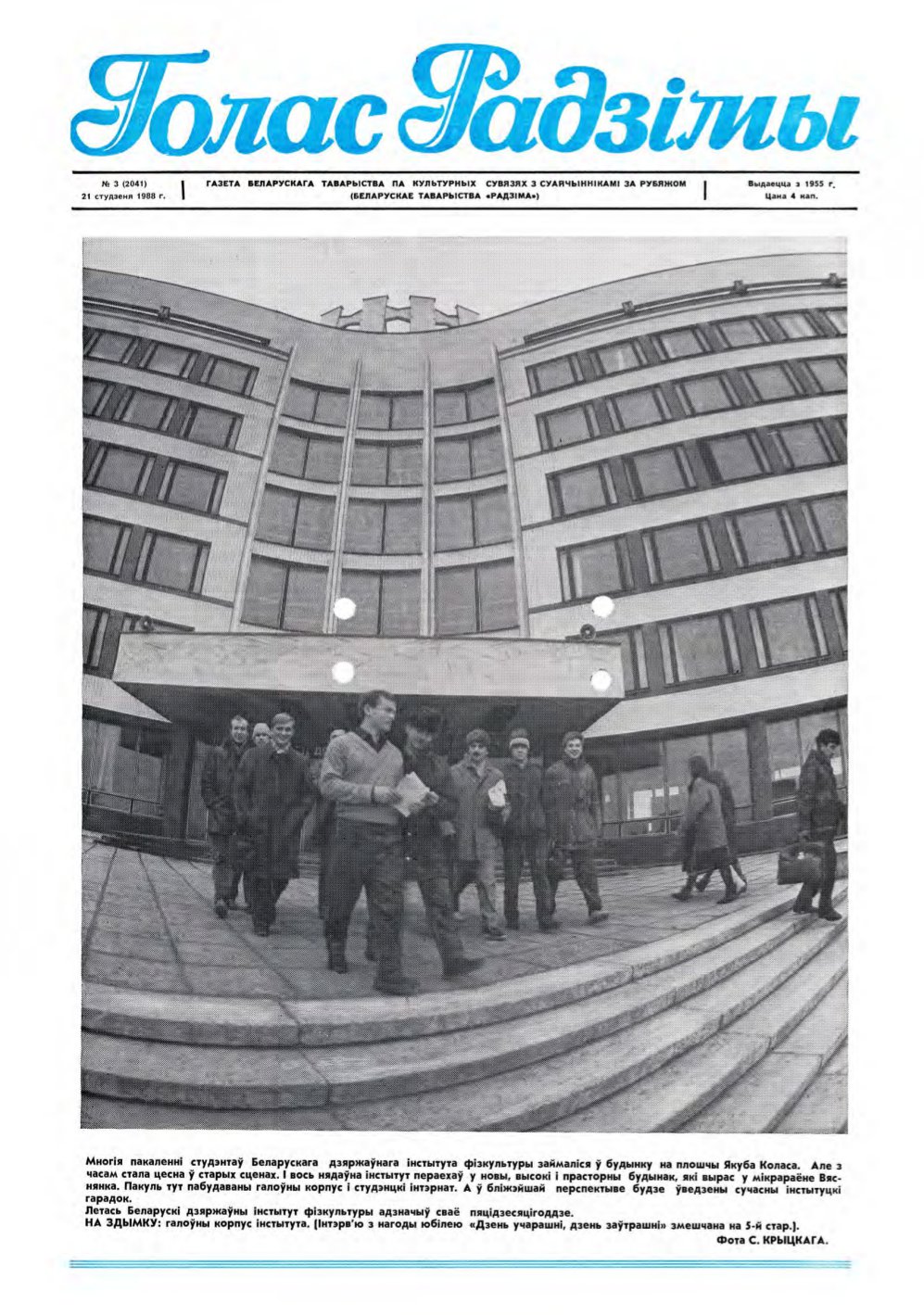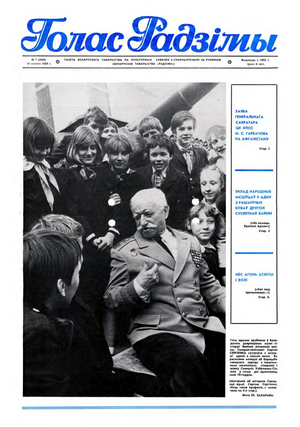 «Голас Радзімы» — штотыднёвая газета Беларускага таварыства Радзіма; інфармацыйна-асветная газета для беларусаў за мяжой. Выдаецца з 6 красавіка 1955 года ў Мінску на беларускай мове штотыднёва. Да студзеня 1960 года называлася «За вяртанне на Радзіму». З сярэдзіны 1970-х гадоў асвятляла жыццё, у тым ліку беларускай эміграцыі. З сярэдзіны 1990-х гадоў адзінае беларускае выданне, якое распаўсюджвалася сярод нацыянальнай дыяспары і ў асяр... Болей »