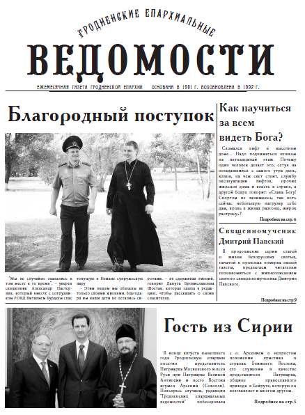 У красавіку гэтага года на адрас архіепіскапа Арцемія быў дасланы вельмі цікавы ліст ад жыхара горада Віцебска Генадзя Васільевіча Буйко. Аўтар ліста – ураджэнец Мастоў – быў сведкай ваенных ліхалеццяў на Гродзеншчыне ў 1941 – 1944 гг. У сваіх успамінах ён вырашыў падзяліцца з Уладыкай даволі цікавым эпізодам з жыцця мясцовага духавенства ў часы вайны. Подробнее на стр. 12 Болей »