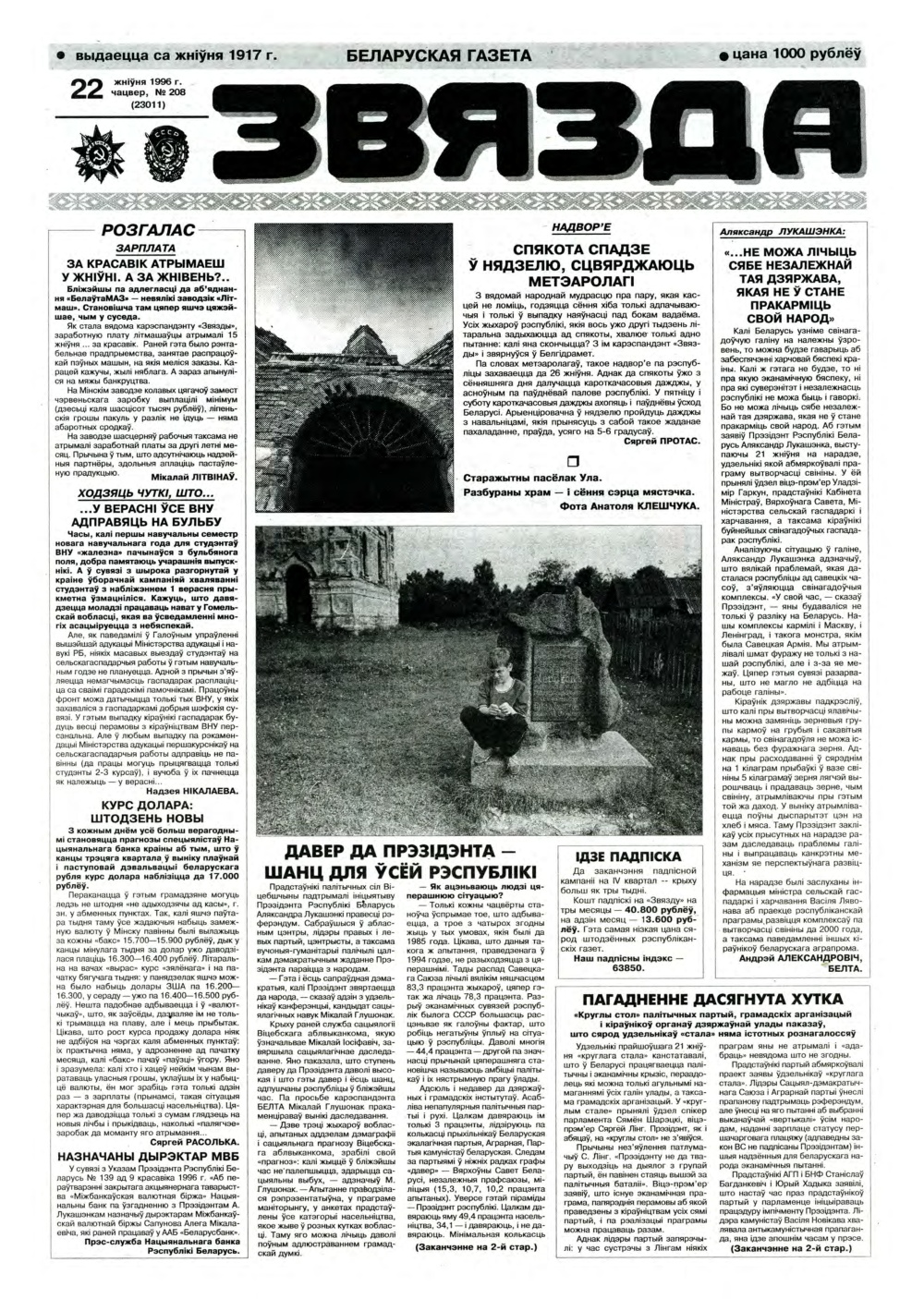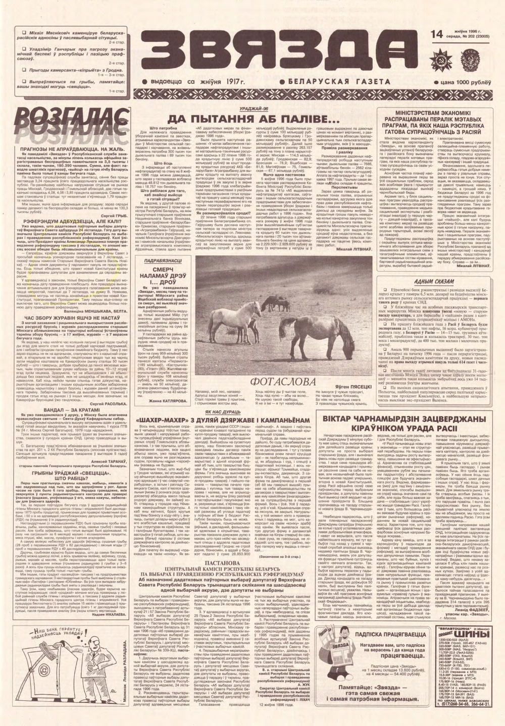 «Звязда» — орган Цэнтральнага Камітэта Камуністычнай партыі Беларусі, Вярхоўнага Савета і Савета Міністраў Беларускай ССР. Выходзіць 250 разоў на год. Аўтары апублікаваных матэрыялаў нясуць адказнасць за падбор і дакладнасць фактаў. Іх меркаванні неабавязкова адлюстроўваюць пункт гледжання рэдакцыі. Болей »