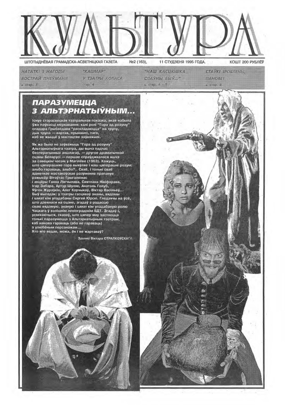 «Культура» — штотыднёвая грамадска-асветніцкая газета. Выдаецца з кастрычніка 1991 года ў Мінску на беларускай мове. Заснавальнік — Міністэрства культуры Рэспублікі Беларусь. З 2002 года з'яўляецца часткай рэдакцыйна-выдавецкай ўстановы «Культура і мастацтва», куды ўваходзіць разам з часопісам «Мастацтва». Галоўныя рэдактары: Вольга Іпатава (1991—1995), Людміла Крушынская (1995—2012), Сяргей Трафілаў (2012—2017), Ілья Сін (з 2017).<a hr... Болей »