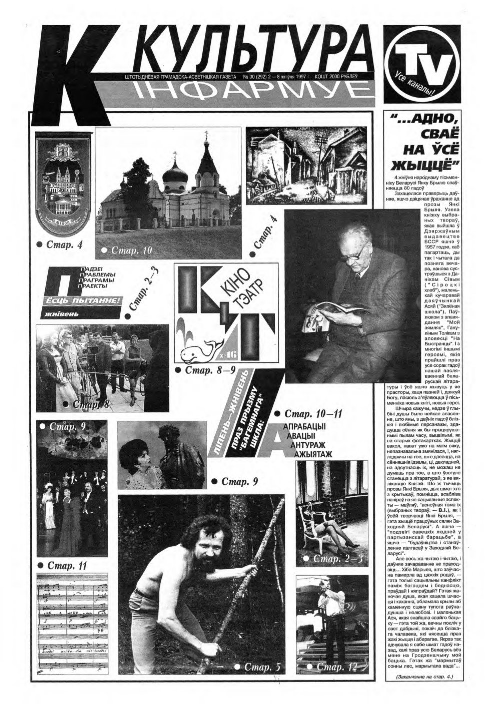 «Культура» — штотыднёвая грамадска-асветніцкая газета. Выдаецца з кастрычніка 1991 года ў Мінску на беларускай мове. Заснавальнік — Міністэрства культуры Рэспублікі Беларусь. З 2002 года з'яўляецца часткай рэдакцыйна-выдавецкай ўстановы «Культура і мастацтва», куды ўваходзіць разам з часопісам «Мастацтва». Галоўныя рэдактары: Вольга Іпатава (1991—1995), Людміла Крушынская (1995—2012), Сяргей Трафілаў (2012—2017), Ілья Сін (з 2017).<a hr... Болей »