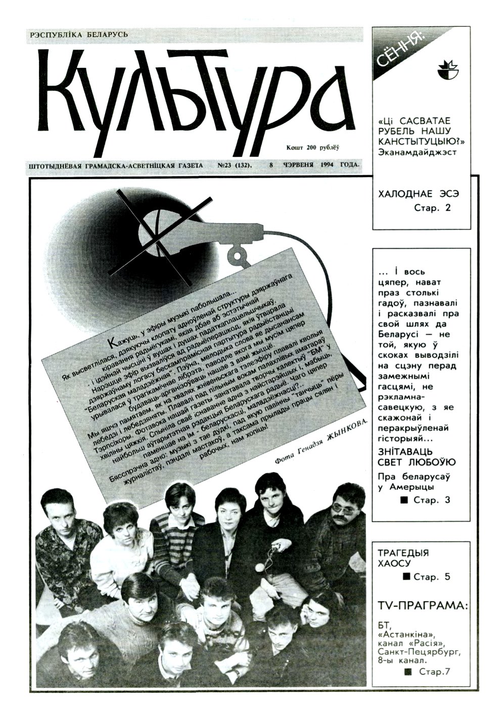 «Культура» — штотыднёвая грамадска-асветніцкая газета. Выдаецца з кастрычніка 1991 года ў Мінску на беларускай мове. Заснавальнік — Міністэрства культуры Рэспублікі Беларусь. З 2002 года з'яўляецца часткай рэдакцыйна-выдавецкай ўстановы «Культура і мастацтва», куды ўваходзіць разам з часопісам «Мастацтва». Галоўныя рэдактары: Вольга Іпатава (1991—1995), Людміла Крушынская (1995—2012), Сяргей Трафілаў (2012—2017), Ілья Сін (з 2017).<a hr... Болей »