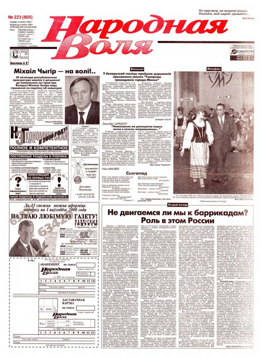 Народная Воля, 223 (805) 1999