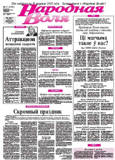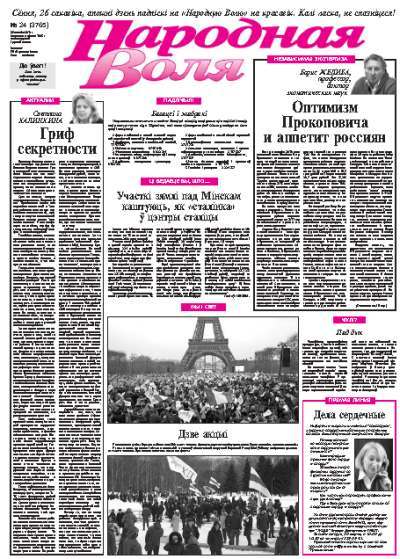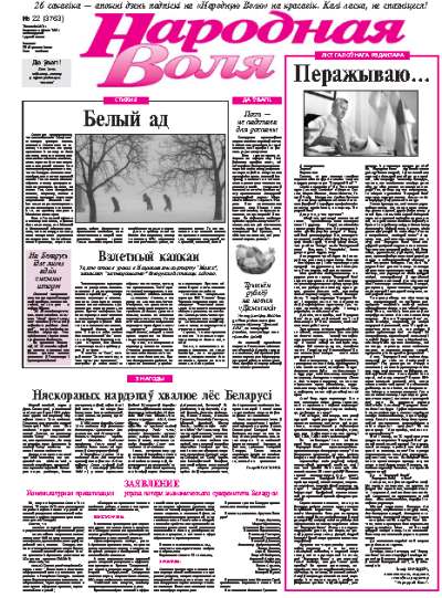 Хвалюе, не дае спакою галоўная справа майго жыцця. А менавіта: чаму так марудна расце тыраж “Народнай Волі”? Слабыя журналісты? Не. Чаго вартая адна Святлана Калінкіна! А Марына Коктыш, Марыя Эйсмант, Алена Малочка, Георгій Чыгір... Матэрыялы Сямёна Букчына — ці ж не ўзор публіцыстыкі самага высокага ўзроўню? Сапраўдны прафесіяналізм вызначае многіх іншых, хто служыць “Народнай Волі”. Дык у чым, у чым прычына? — Мінуў час, калі людзі м... Болей »