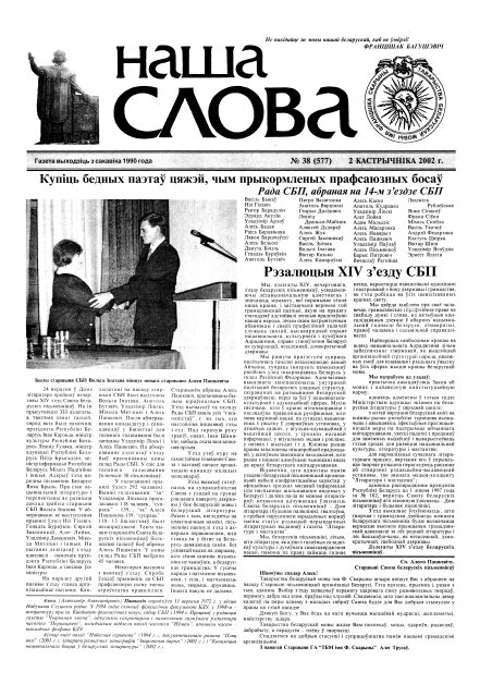 Наша слова, 38 (577) 2002