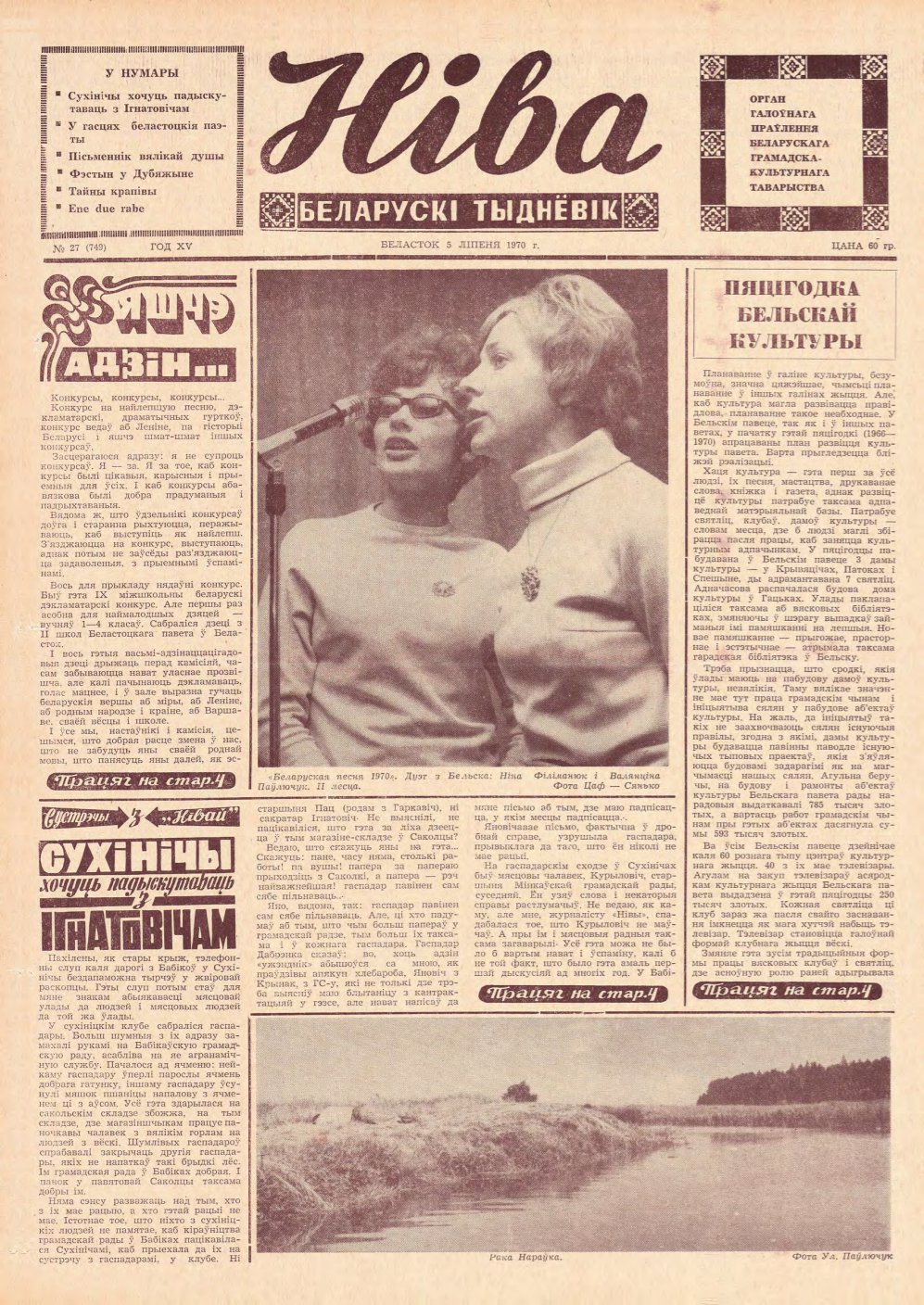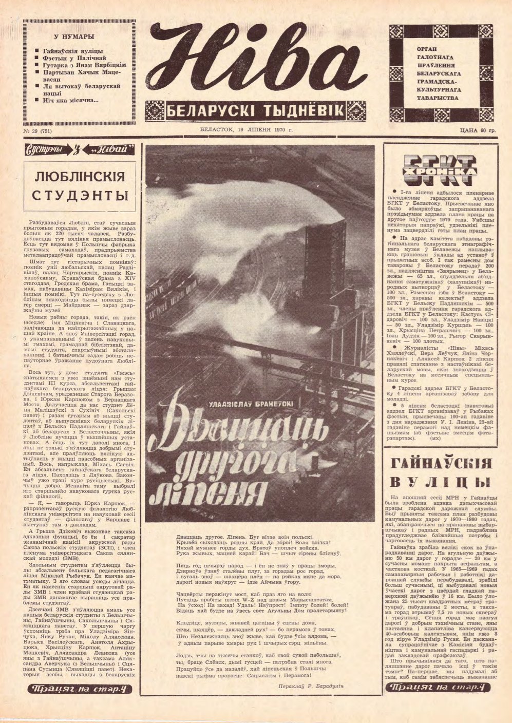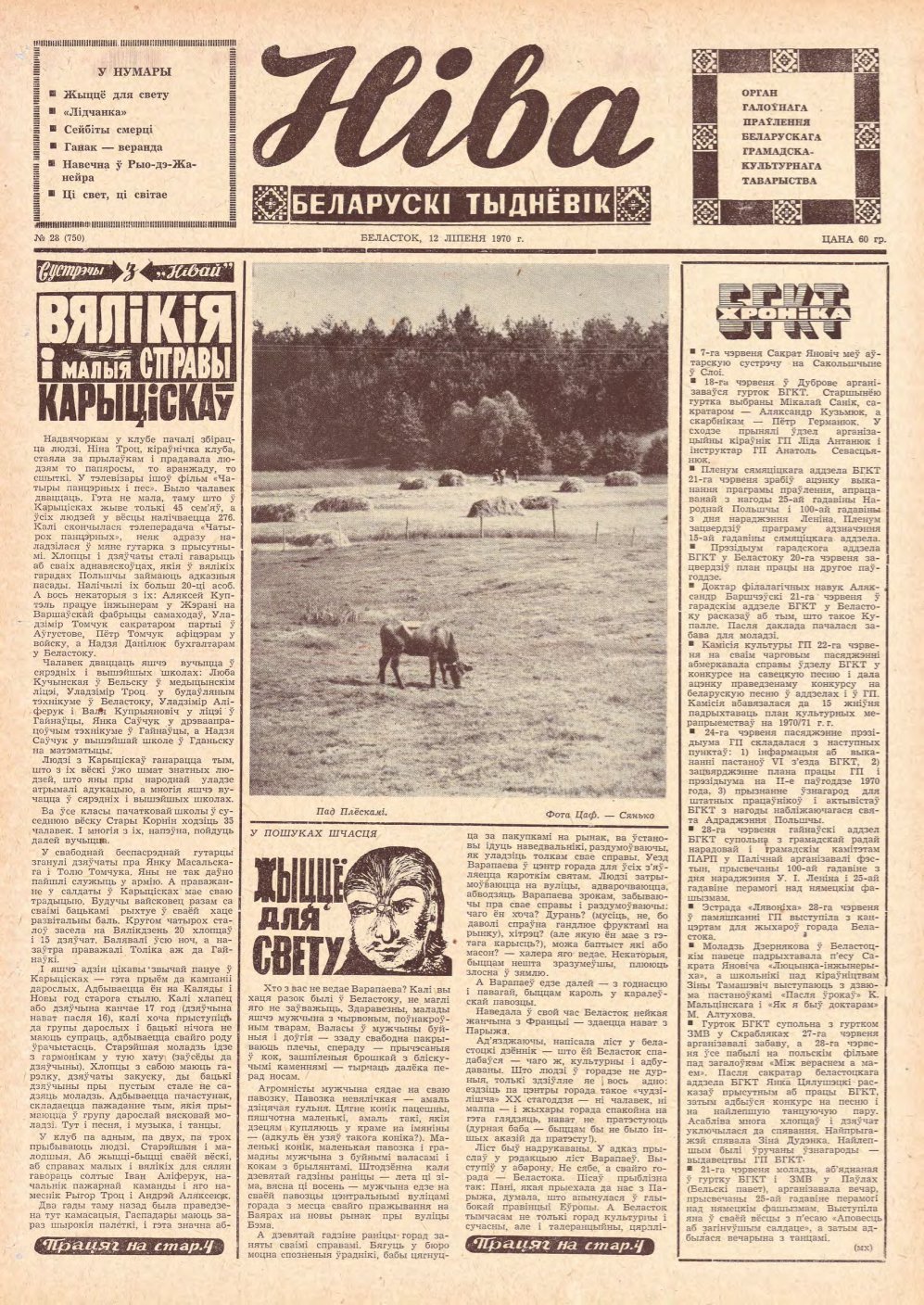 «Ніва» — штотыднёвая газета, якая выдаецца на беларускай мове ў Беластоку. Газета была заснавана ў 1956 Беларускім грамадска-культурным таварыствам. Зараз яе выдае Праграмная рада тыднёвіка «Ніва». Газета асвятляе штодзённае жыццё беларусаў у Польшчы, дзейнасць грамадскіх арганізацый, друкуе матэрыялы па краязнаўстве, змяшчае артыкулы, прысвечаныя актуальным падзеям на Беларусі. Выходзіць старонка для дзяцей «Зорка», перыядычна змяшчаюц... Болей »