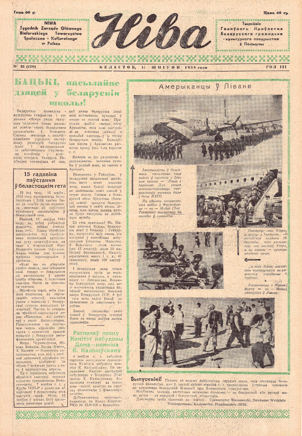 Ніва, 38 (134) 1958