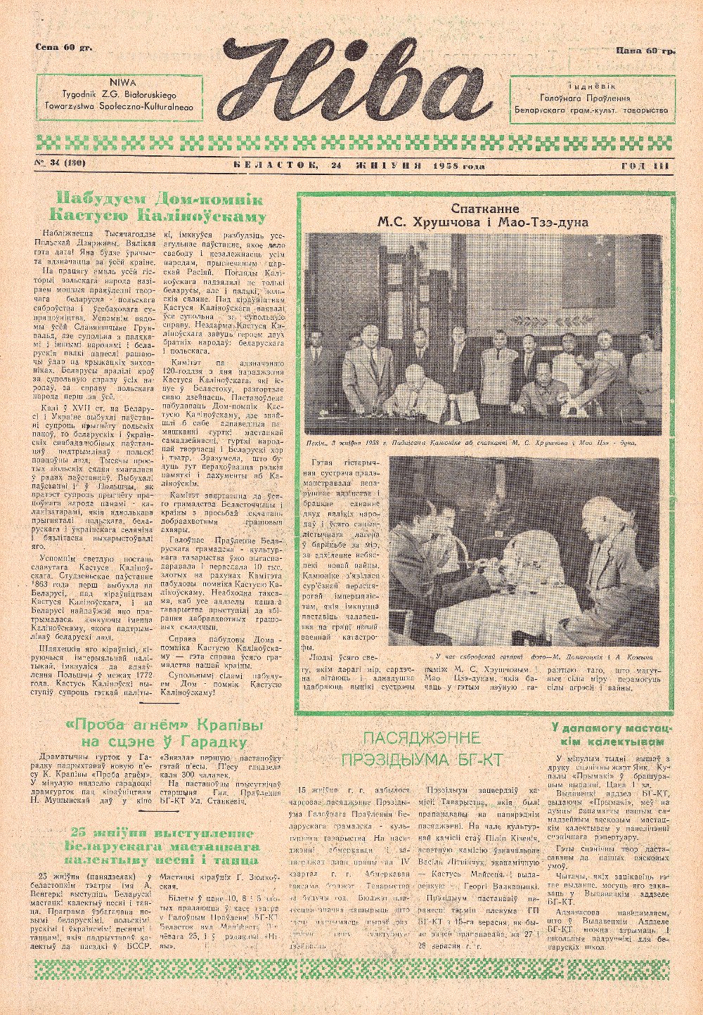Ніва, 34 (130) 1958