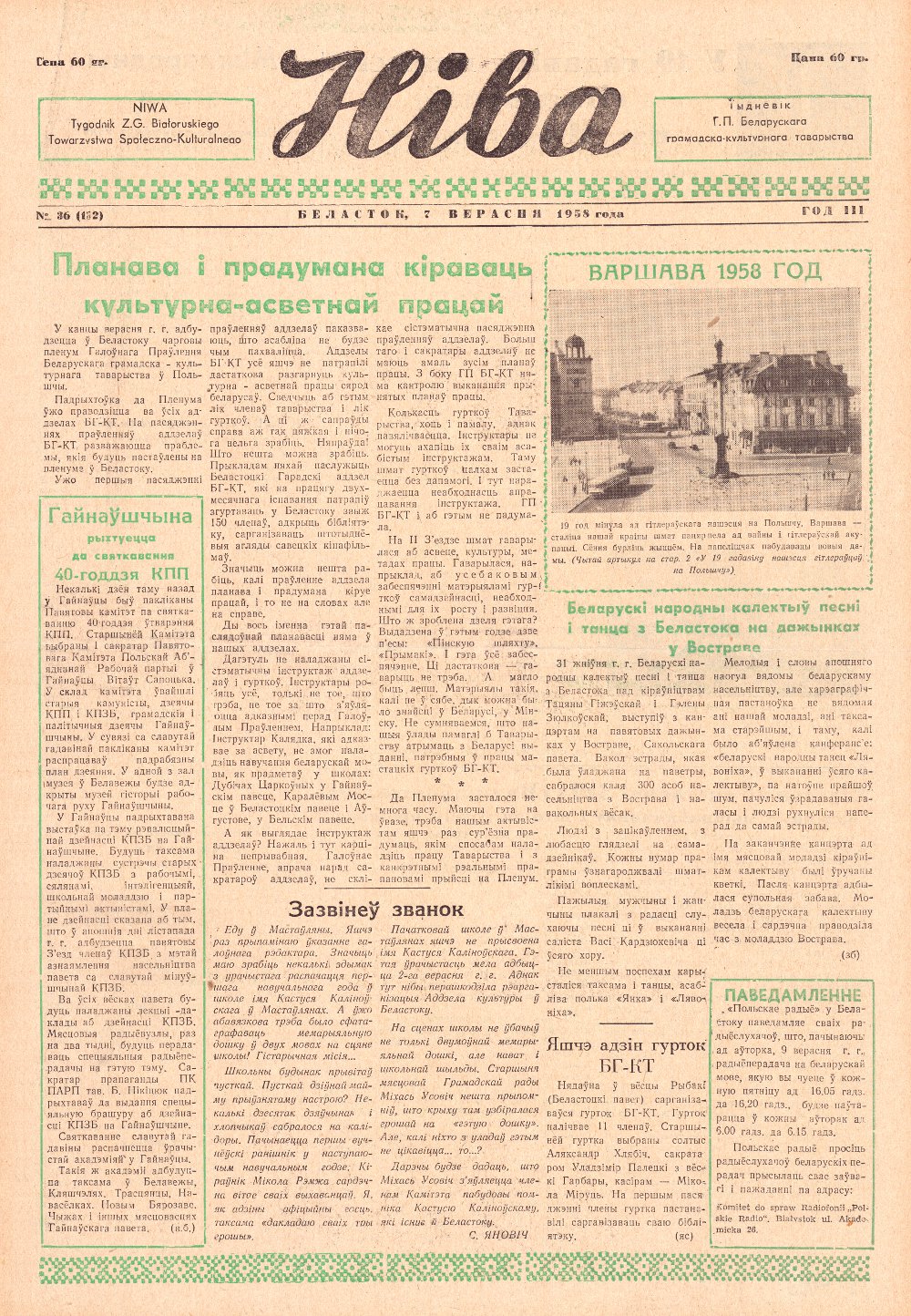 Ніва, 36 (132) 1958