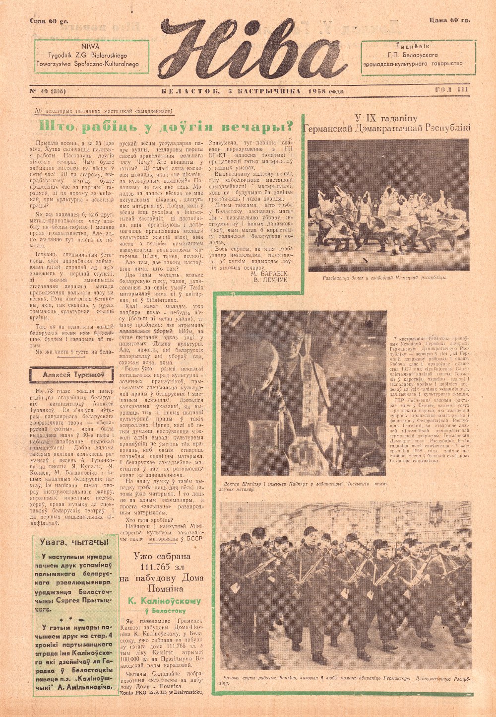 Ніва, 40 (136) 1958