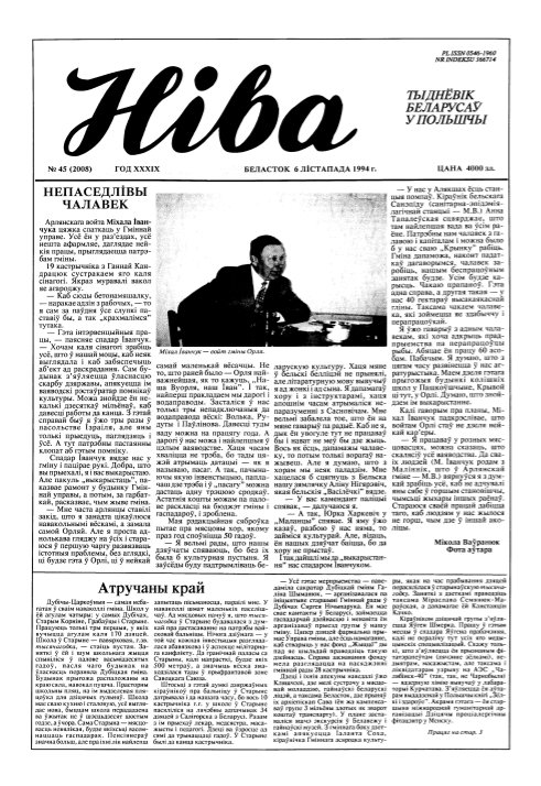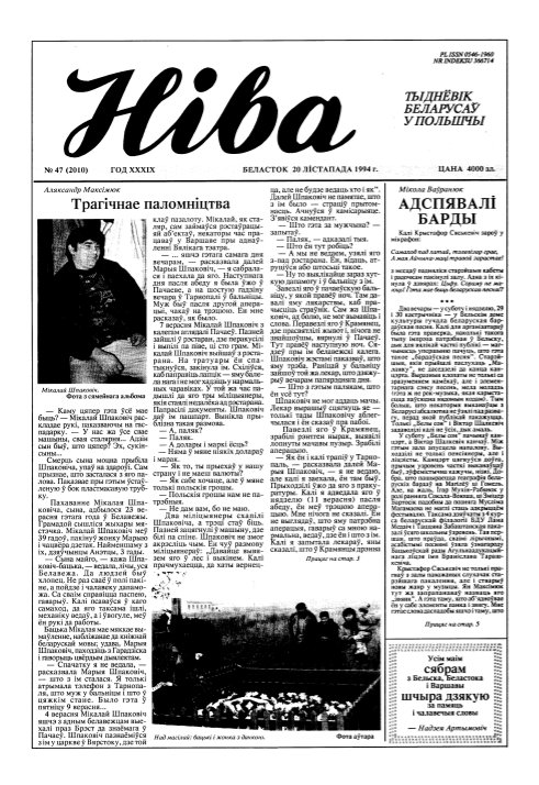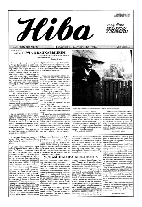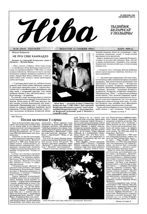 «Ніва» — штотыднёвая газета, якая выдаецца на беларускай мове ў Беластоку. Газета была заснавана ў 1956 Беларускім грамадска-культурным таварыствам. Зараз яе выдае Праграмная рада тыднёвіка «Ніва». Газета асвятляе штодзённае жыццё беларусаў у Польшчы, дзейнасць грамадскіх арганізацый, друкуе матэрыялы па краязнаўстве, змяшчае артыкулы, прысвечаныя актуальным падзеям на Беларусі. Выходзіць старонка для дзяцей «Зорка», перыядычна змяшчаюц... Болей »