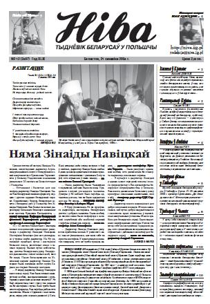 Сумная вестка аб смерці Зінаіды Навіцкай, шматгадовай дырэктар Агульнаадукацыйнага ліцэя з беларускай мовай навучання імя Браніслава Тарашкевіча ў Бельску-Падляшскім маланкава разышлася 10 сакавіка па Беласточчыне і Польшчы. — Нечаканая і балючая для нас смерць дырэктар Зінаіды Навіцкай. Была Яна беларускай вялікага фармату, сэрцам і душою адданая беларускай справе. Бяднейшымі будуць беларуская асвета і беларускі рух у Польшчы без Зінаі... Болей »
