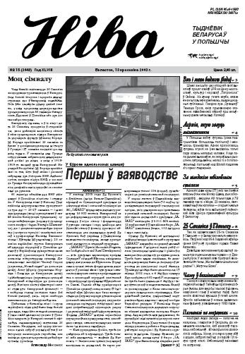 Ад некалькіх тыдняў не спыняецца дыскусія наконт кампенсацыі з боку Еўрасаюза для сялян Польшчы. Прадметам дыскусіі аднак не з’яўляецца сума грошай, а толькі спосаб яе падзелу. Варшаўскія сяляне з ПСЛ, Самаабароны і пару нацыянальных груповак дамагаюцца заплаты кожнаму, хто мае зямлю. Еўрасаюзныя чыноўнікі хацелі б часткова плаціць такім метадам, але ў асноўным даваць грошы тым, якія даюць прадукцыю. Прэм’ер-міністр Лешэк Мілер і больша... Болей »