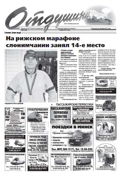 «Газета Слонімская» — масава-палітычны штотыднёвік, выходзіць накладам больш за 5.000 асобнікаў, упершыню выйшаў у 1938 годзе, адроджаны ў красавіку 1997 года, распаўсюджваецца (разам з газетай “Отдушина”) праз уласную сістэму распаўсюджвання ў горадзе Слоніме i Слонімскім раёне, а таксама ў суседніх раёнах Гродзенскай вобласці. Болей »