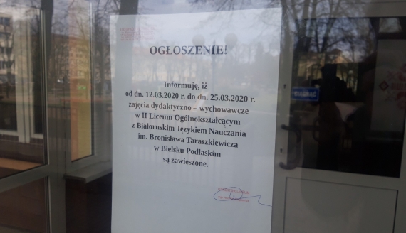 Беларускія перадачы "Пад знакам Пагоні" зьяўляюцца ў эфіры Радыё Беласток кожны дзень: панядзелак-чацьвер 18:45 - 19:00, пятніца 18:30 - 19:00, субота 18:30 - 18:45, нядзеля 8:30 - 9:00. Tysiące uczniów szkół zostali w domach. Od dziś obowiązuję dwutygodniowa kwarantanna we wszystkich placówkach edukacyjnych w kraju. Dziś i jutro szkoły świadczą jeszcze opiekę dla dzieci, rodzice których nie zdążyli organizować im opiekę w domu. Jak kwa... Болей »