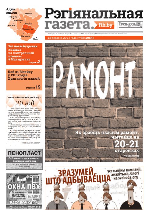 “Рэгіянальная газета” – недзяржаўнае выданне, якое не з’яўляецца выразнікам інтарэсаў і пазіцый якой-небудзь палітычнай партыі, рэлігійнай канфесіі, органаў улады. У сваіх публікацыях па пытаннях эканомікі, палітыкі, культуры, гісторыі, рэлігіі рэдакцыя захоўвае незалежную непрадузятасць і павагу да праўды, у роўнай ступені паказвае супрацьлеглыя пункты гледжання, пазбягаючы тэндэнцыйнасці. Выданне разлічанае на масавага чытача рознага ... Болей »