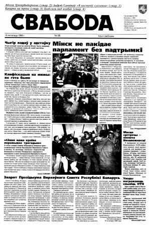 Свабода - самая масавая незалежная газэта ў Беларусі 1990-х гадоў. Выдавалася з 25 сакавіка 1990 па 1997 ў Менску. Газэта асьвятляла пытаньні грамадзка-палітычнага, эканамічнага, культурнага і духоўнага жыцьця Беларусі, знаёміла чытачоў з міжнароднымі падзеямі, друкавала матэрыялы па гісторыі Беларусі. Рэдакцыя выданьня стаяла на нацыянальна-дэмакратычных пазыцыях, крытычна адносілася да дзеючых на Беларусі органаў улады. Рэдакцыя лічыл... Болей »