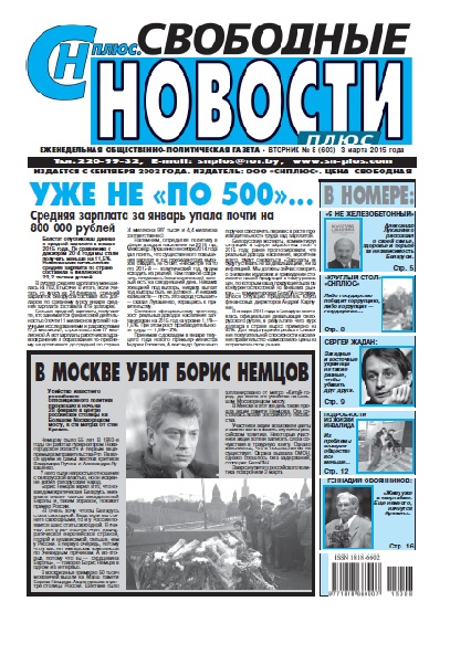29 августа 2002 в Минске вышел первый номер нового еженедельника "Снплюс. Свободные новости плюс", зарегистрированного еще в прошлом году. Учредителем издания выступило ООО "Снплюс". Как сообщил главный редактор газеты Александр Улитенок, издание приобрело новый логотип, хотя сохранило формат "Свободных новостей" и их традиционные цвета - сине-голубой и черный. "Это новая газета старого коллектива, в 1991, 1992, 1994, 1997 и 2002 годах ... Болей »