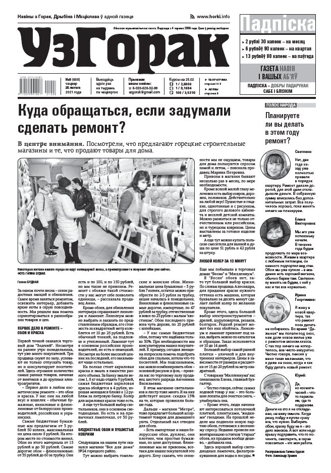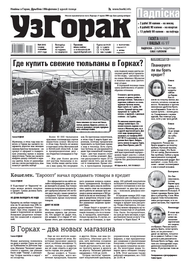 Абласная газета "УзГорак" выходзіць і прадаецца ў Горацкім, Дрыбінскім і Мсціслаўскім раёнах па чацвяргах. Наклад – 2100 асобнікаў на тыдзень. Актуальныя для мясцовых жыхароў тэмы, штотыднёвыя апытанні гараджан, фотарэпартажы, праграма любімых тэлеканалаў, сканворды, прыватныя аб'явы, астрапрагноз і віншаванні. Болей »