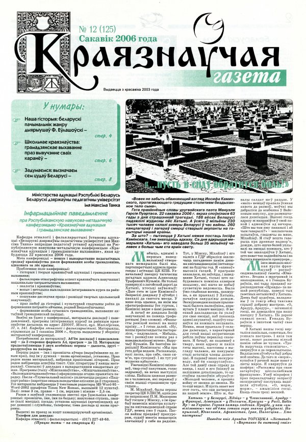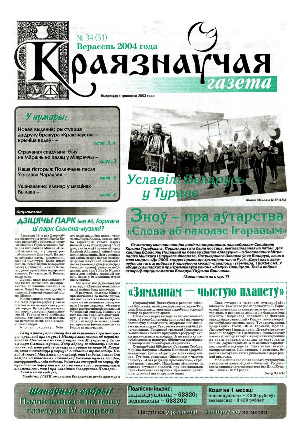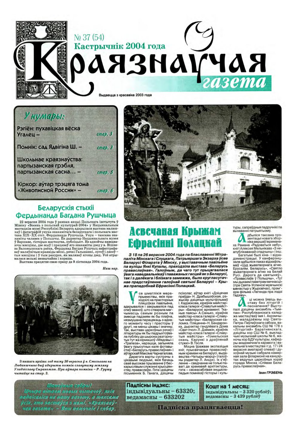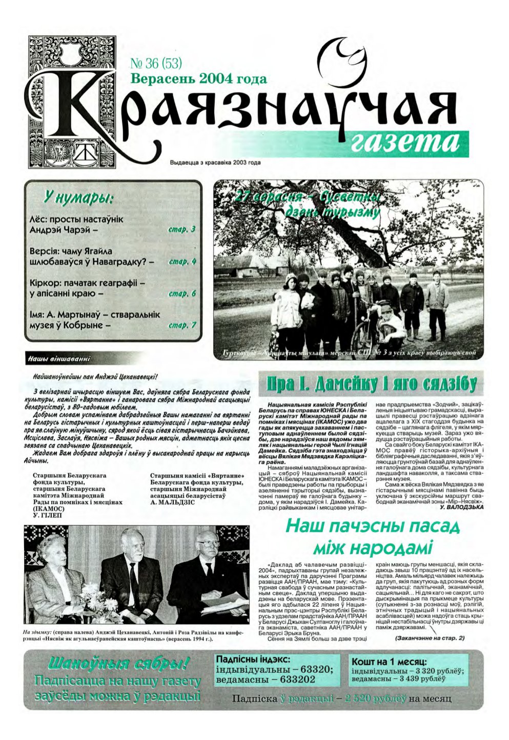 «Краязнаўчая газета» выдаецца з красавіка 2003 г. Штомесяц выходзіць чатыры нумары. На старонках выдання змяшчаюцца артыкулы мясцовых краязнаўцаў, прысвечаныя гісторыі і традыцыям рэгіёнаў нашай краіны, даследаванні навукоўцаў пра гісторыю, этнаграфію, фальклор і архітэктуру, пра гістарычныя падзеі і асобаў, а таксама расповяды пра нашых землякоў, якія праславіліся не толькі ў ў Беларусі, але і за яе межамі. Асобная ўвага надаецца публі... Болей »