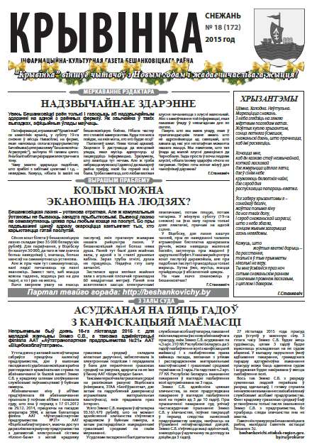 Па інфармацыі, атрыманай “Крывінкай” са шматлікіх крыніц, у суботу 19-га снежня ў вёсцы Навасёлкі, на ферме, якая належыць сельгаспрадпрыемству Бачэйкава (цяперашняму "Бешанковічы-Аграсервіс"), загінула 44 галавы цялят. Яны былі забітыя разрадам электрычнага току. Чаму змагло здарыцца падобнае, што зрабілі з забітымі цялятамі і г.д. – невядома. Кажуць, нібыта іх вазілі на бешанковіцкую бойню. Нібыта частку яго сплавілі камерсантам. Куды... Болей »