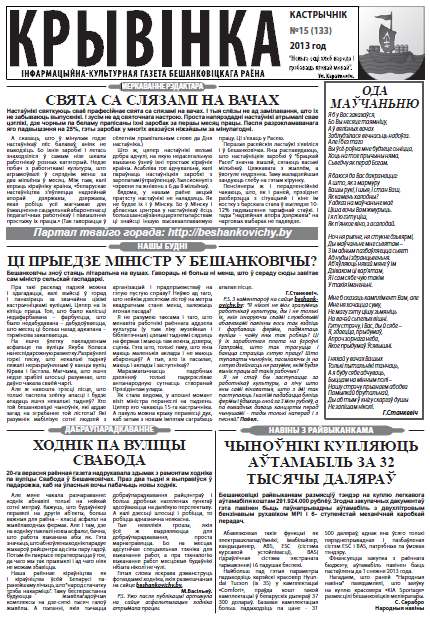 Для нетутэшых патлумачу, што лясной крынічкай у Бешанковічах называюць крыніцу, што выцякае на беразе Крывінкі за раённай бальніцай. Да яе можна лёгка трапіць, калі паехаць з райцэнтра ў бок Віцебска праз вёску Крывіна. Але ад’ехаўшы ад горада ледзь не з кіламетр і недаехаўшы да вёскі Крывіна таксама з кіламетр, убачыш паварот налева. Дарога накатаная, так што памыліцца нельга. Менавіта гэтай дарогай штодня бешанкоўцы едуць па ваду. Дзе... Болей »