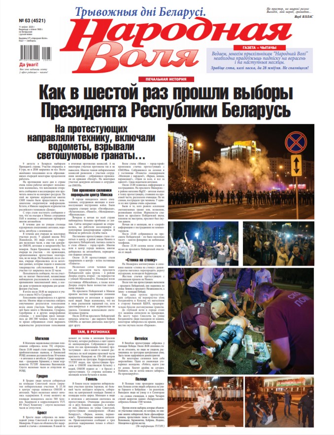 Палітычны крызіс, пачатак якога супаў з пачаткам выбарчай кампаніі, паступова пераходзіць у вельмі вострую стадыю. Двое загінуўшых (адзін у Мінску, другі ў Гомелі), сотні параненых, тысячы затрыманых. І прычына крызісу вельмі банальная, у свеце такое здараецца не ўпершыню. Аўтарытарны лідар, прайграўшы выбары, пра што сведчаць шматлiкiя факты, адмаўляецца саступаць уладу. Звычайна супрацьстаянне адбываецца паміж рознымі часткамі грамад... Болей »