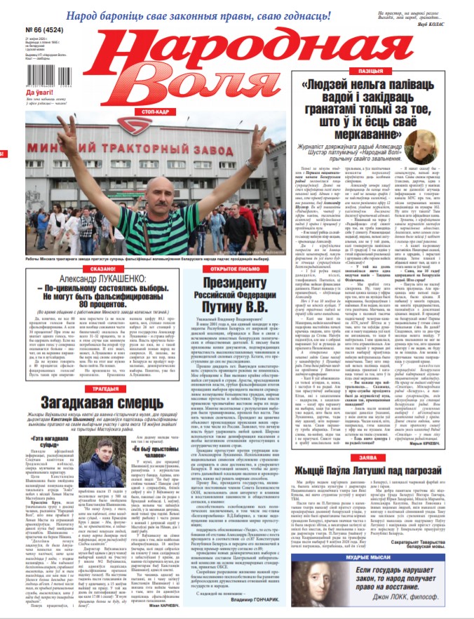 Мои дорогие люди, мои белорусы! Мы все и наша страна переживаем сейчас очень сложный период своей истории. Когда подлость граничит с героизмом, отчаяние с мужеством, а любовь с предательством. В этот период мы должны сделать свой выбор, этого требует от нас время. В эти дни, когда мы хороним наших героев, я плачу вместе с вами. Это невероятная потеря для страны – невинно убитые молодые люди. Нам необходимо поддержать их семьи, их имена... Болей »