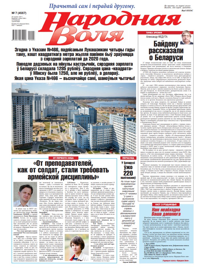 27 января Атлантический совет (в США это очень влиятельный экспертно-консультационный центр) представил новой американской администрации свои рекомендации, как вести политику в отношении Беларуси. Приведем некоторые цитаты из аналитической записки «Байден и Беларусь: стратегия для новой администрации». «В 2020 году белорусы неожиданно поставили под сомнение легитимность Александра Лукашенко на августовских президентских выборах в стране... Болей »