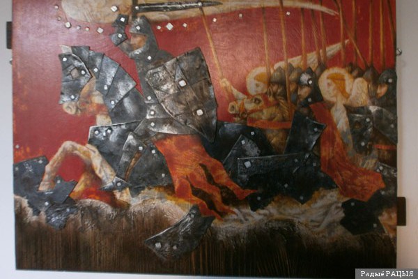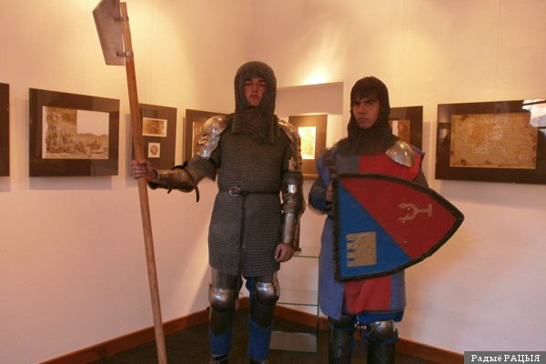 Адначасова адкрылася выстава ілюстрацый да кнігі. Выстава складаецца з дзвюх частак: адна з іх – гэта шэраг графічных ілюстрацый да кнігі пра Гедыміна, другая – леўкас на дрэве з тканінай і металам.